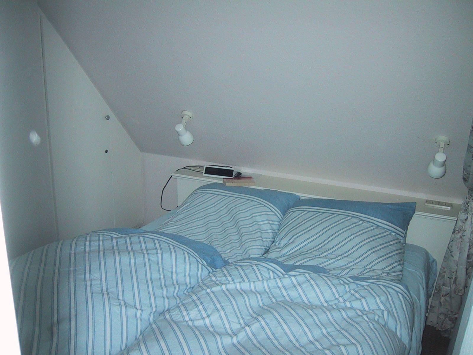 Die beiden Schlafzimmer in der oberen Etage haben Dachschrägen und sind mit einem Doppelbett (1,60m breit) sowie zwei einzelnen Betten ausgestattet. Vom Wohnzimmer mit Küchenzeile aus tritt man auf einen hellen Balkon mit Morgensonne. Die Küchenzeile ist mit vier Herdplatten und Kochgeschirr ausgestattet. Im Wohnzimmer befindet sich ein Flachbild-Fernseher. Die Wohnung besitzt ein Duschbad auf der unteren Etage.