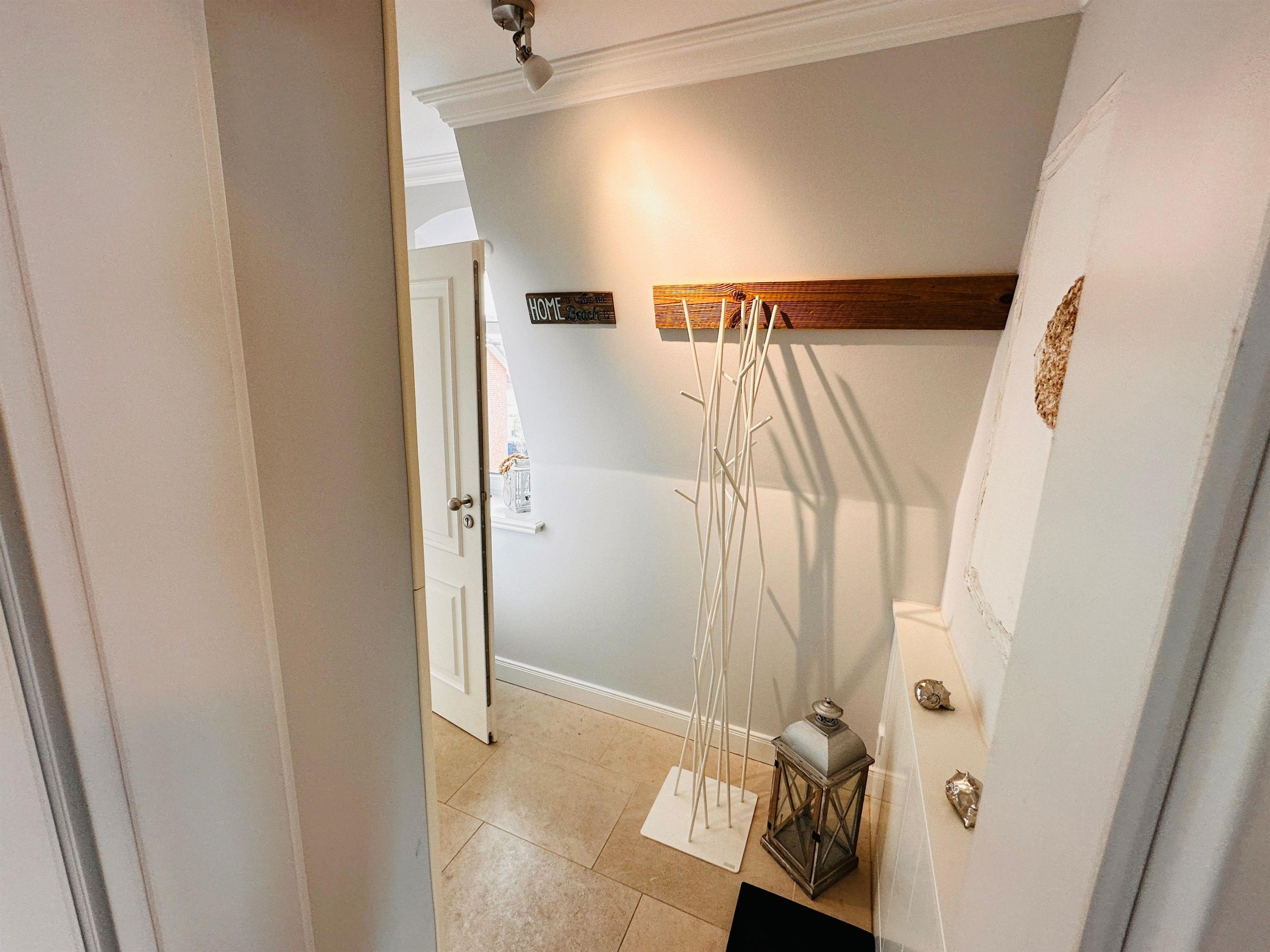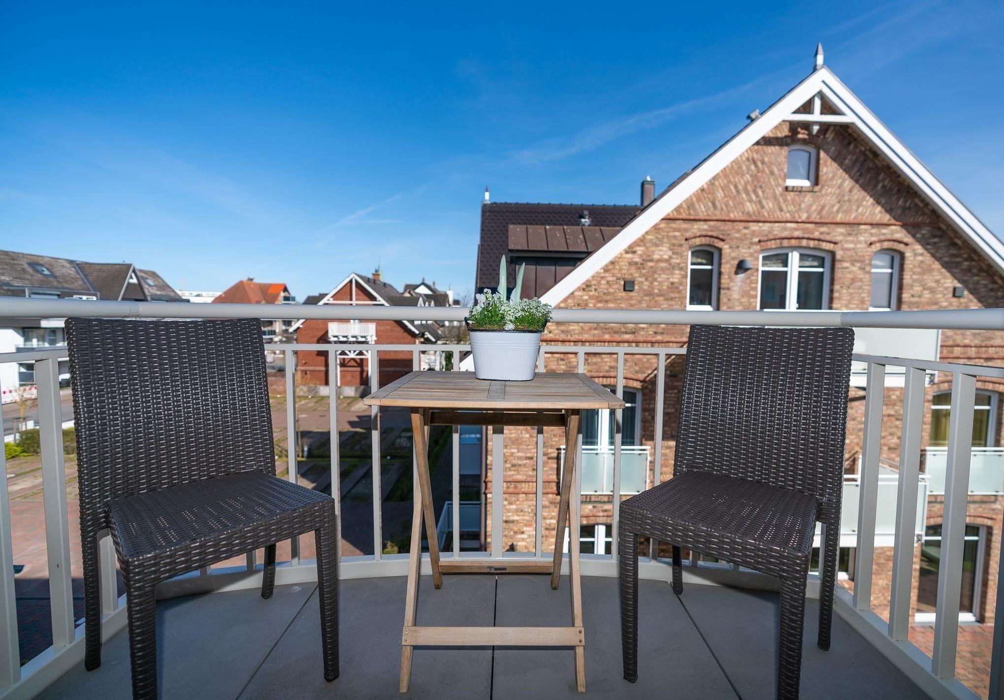 Von hier gelangen Sie auch auf den Balkon der Ihnen - nach Osten ausgerichtet - die Sylter Morgensonne anbietet. Durch die interne Treppe erreichen Sie das Schlafzimmer, mit Zugang zu einem vollwertigen und großzügigen Bad. Im Schlafzimmer befindet sich der große Loewe TV mit dem Telekom Entertain TV-Paket.