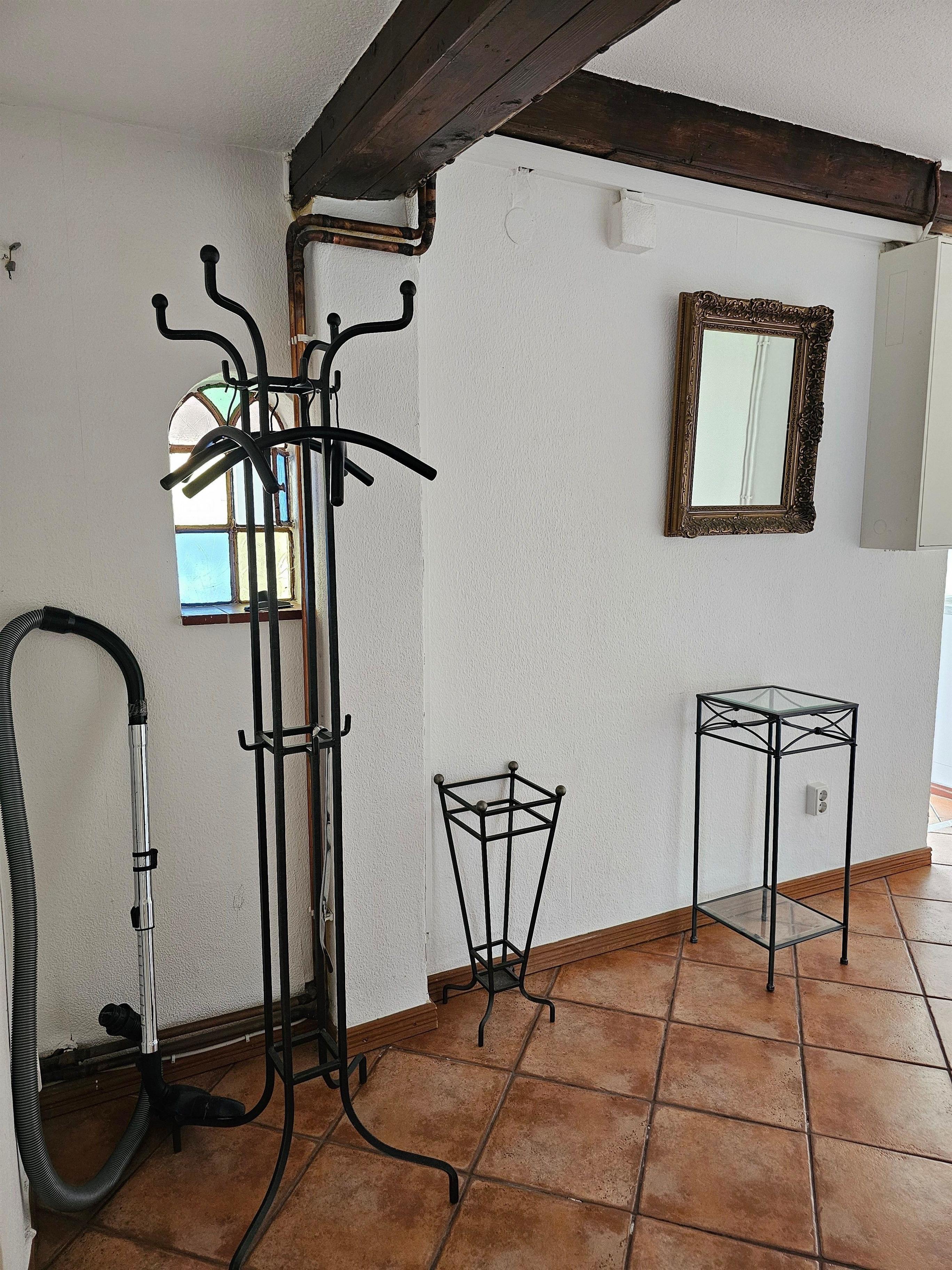 Im Wohnzimmer befindet sich ein Fernseher (Sat) und Radio. Eine Waschmaschine befindet sich am Haus.