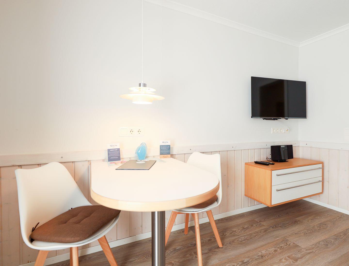 Mit individuell getischlerte Einbauten, hochwertige Holzvertäfelungen und hellen Pastelltönen bietet das Appartement viel Platz für alle, bei denen Komfort großgeschrieben wird. Nicht zu viel, nicht zu wenig, sondern genau richtig. Ein Schlafzimmer mit bequemen Doppelbett sorgt für schöne (Sylt)träume. Das Wohnzimmer verfügt über einen Esstisch und eine große Couch zum chillen. Abgerundet wird dieser Wohlfühlort durch eine kleine aber gut ausgestattete Küchenzeile sowie ein helles Duschbad. Bei schönem Wetter lädt die Terrasse vor der Tür zum Draußen sitzen ein.