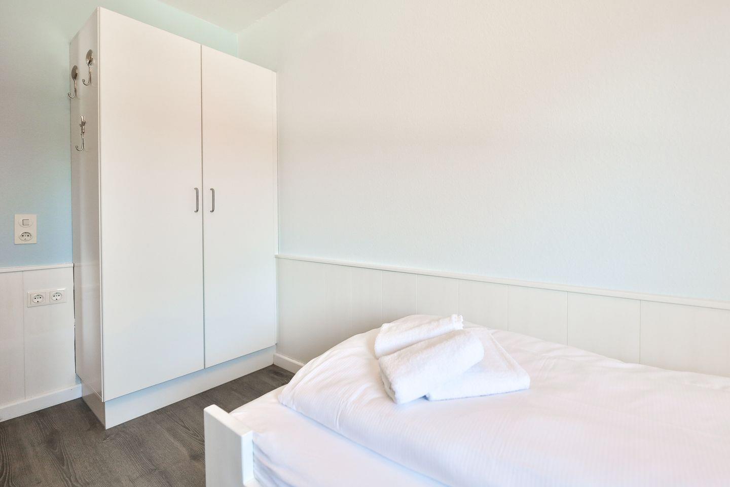 Mit individuell getischlerte Einbauten, hochwertigen Holzvertäfelungen und hellen Pastelltönen bietet das Appartement viel Platz für alle, bei denen Komfort großgeschrieben wird. Nicht zu viel, nicht zu wenig, sondern genau richtig. Ein Schlafzimmer mit bequemen Doppelbett und eins mit Einzelbett sorgen nachts dafür, dass jeder einen traumhaften Schlafplatz hat. Das Wohnzimmer verfügt über einen Esstisch und eine große Couch zum chillen. Abgerundet wird dieser Wohlfühlort durch eine kleine aber gut ausgestattete Küchenzeile sowie ein helles Duschbad.