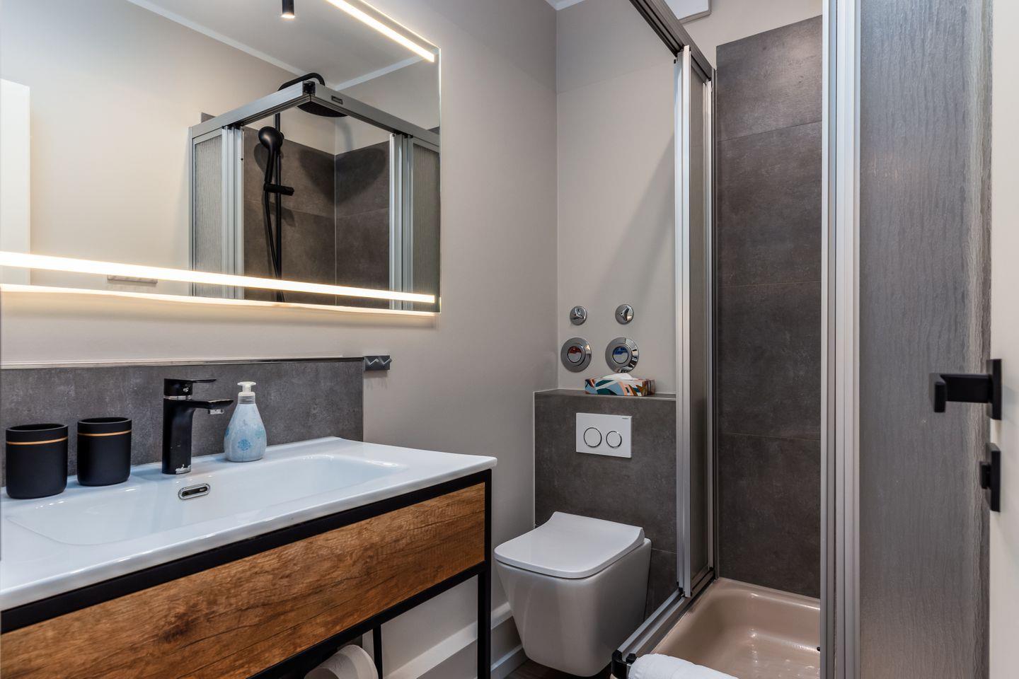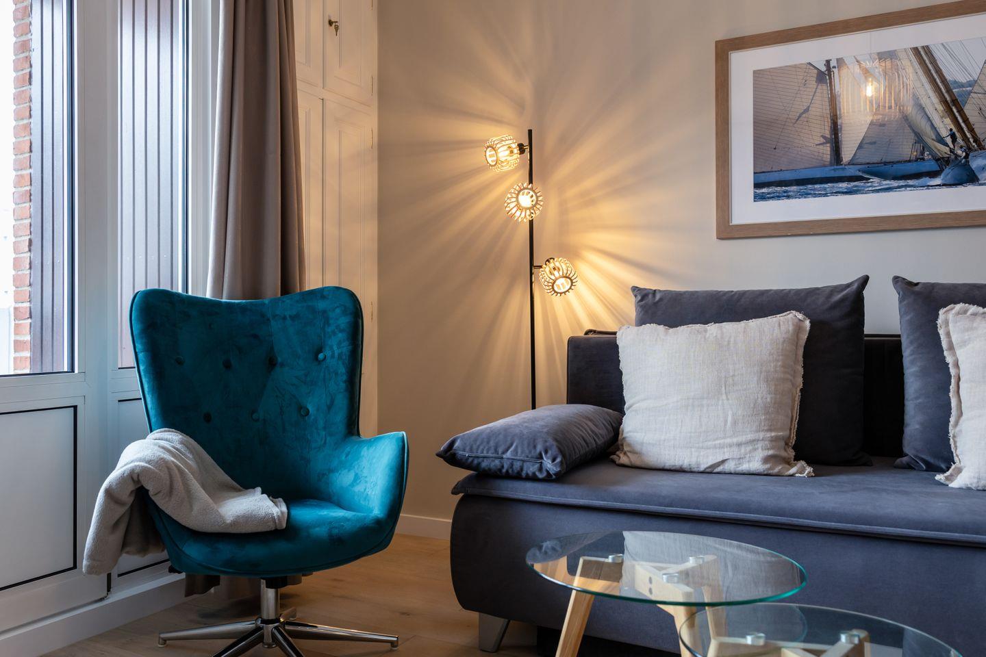 Im Flur bietet ein großer Einbauschrank ordentlich Stauraum und auch das moderne Duschbad lässt nichts vermissen. Vor der Tür wartet dann die Stadt und bereits der Blick vom Balkon Richtung Friedrichstraße macht Lust auf einen kleinen Bummel durch Westerland.