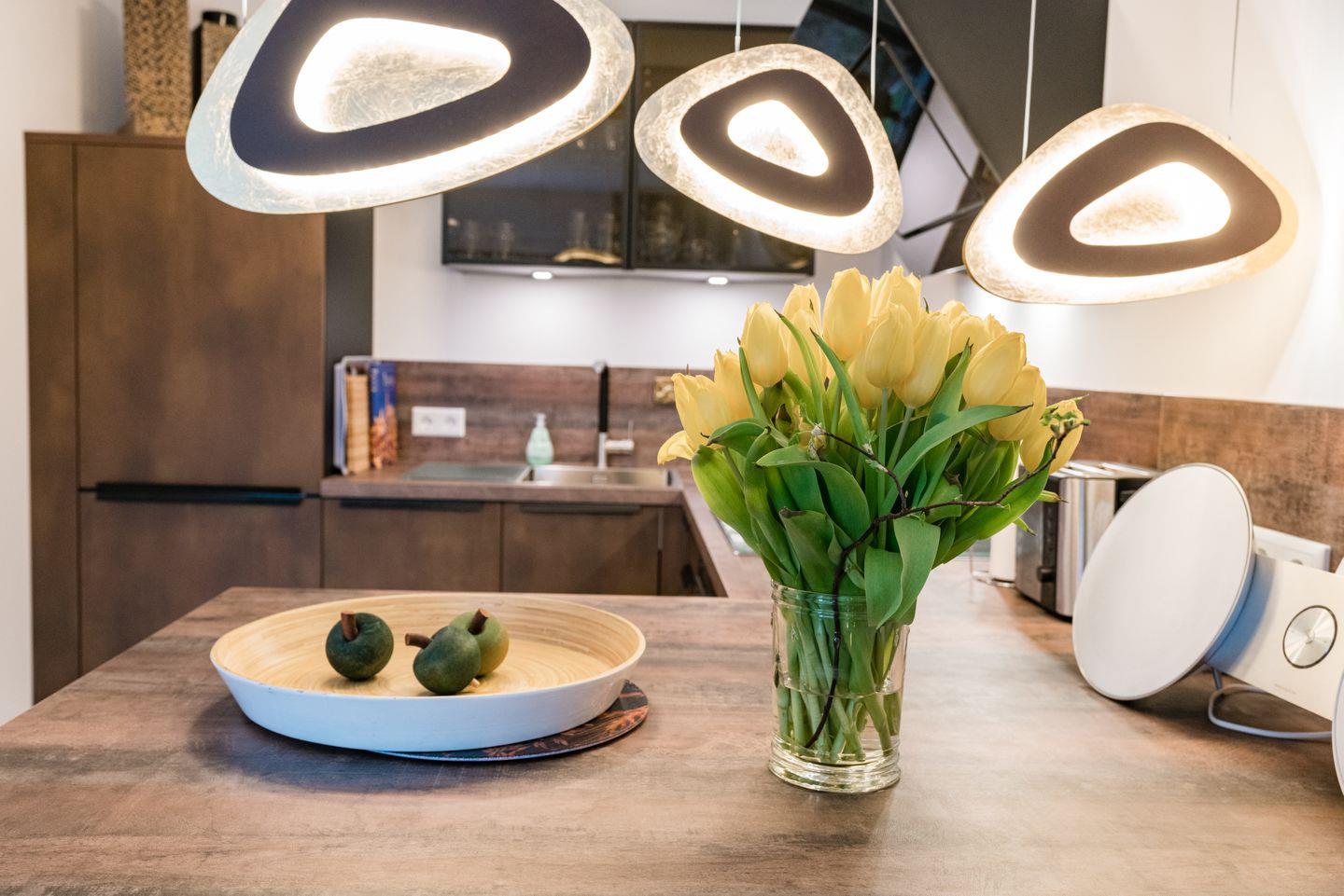 Die offene Küche fällt nicht nur durch ihr cooles Design, sondern auch durch ihre hochwertige Ausstattung und den kleinen Tresen auf.
