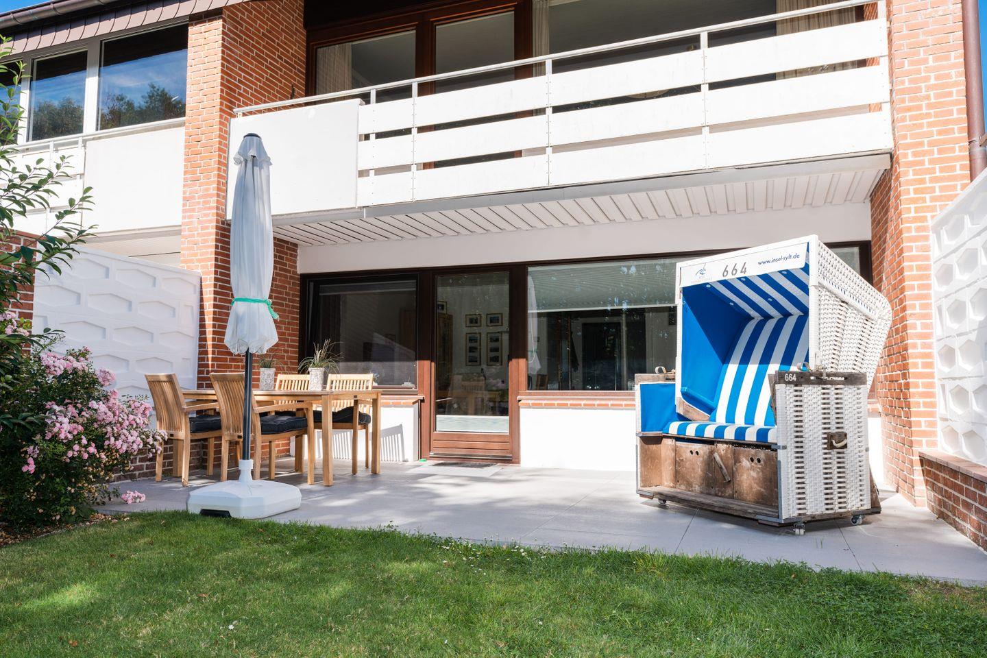 Der Name "Emhüs" kommt übrigens aus dem friesischen und bedeutet übersetzt Bienenstock. Jede Wette, dass sich hier auch die Biene Maja samt Willy wohlfühlen würden, denn allein schon der Wohnbereich lädt mit seiner gemütlichen Couch und dem Ausblick in den Garten zum Relaxen ein. Bei schönem Wetter bietet der Strandkorb auf der Terrasse (Südlage) eine hervorragende Alternative dafür.