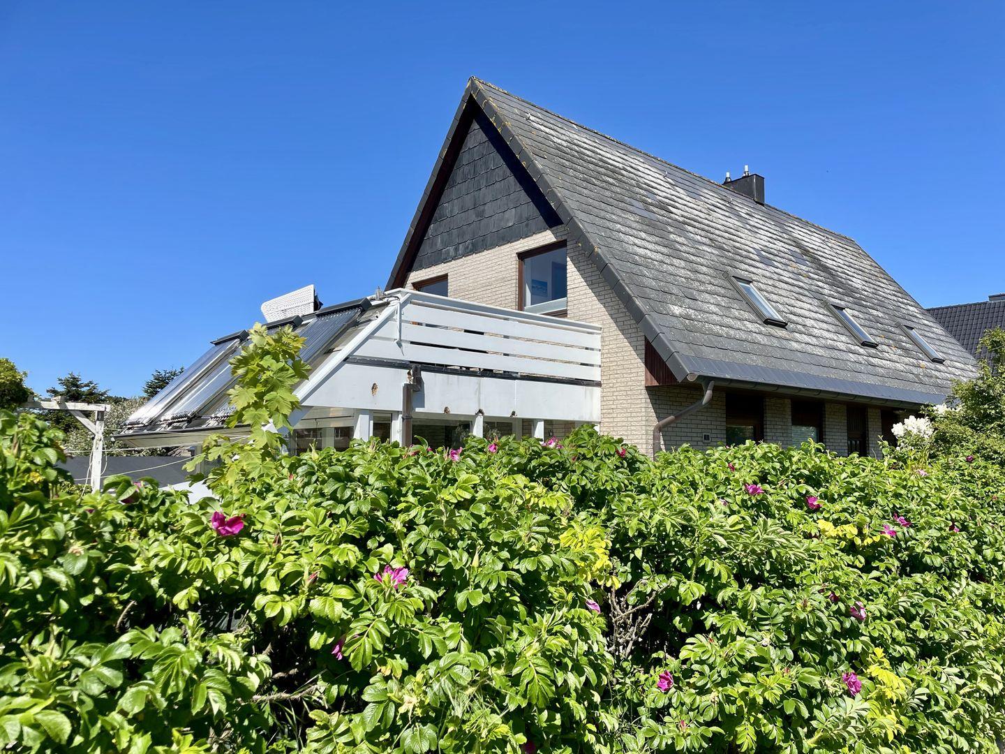 Gemütliche 3-Zimmer Ferienwohnung über zwei Ebenen mit schöner Südterrasse in Westerland. Öffentliche Parkplatzmöglichkeiten in der Umgebung sowie ein Strandkorb (in der Saison).
