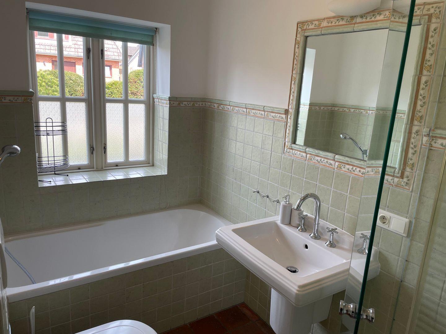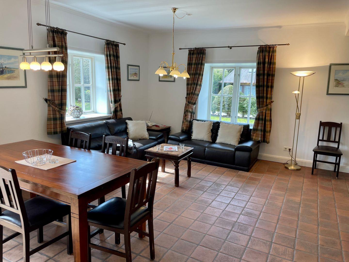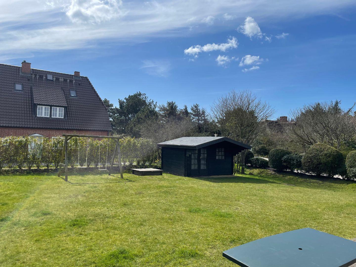 Familienfreundliche ca. 100 m² große Ferienwohnung für bis zu 4 Personen mit schönem Garten in einem wieder-errichteten traditionellen Offiziershaus am Waldrand in direkter Strandlage im Norden Westerlands. Inklusive WLAN, zugehörigem PKW-Stellplatz sowie Strandkorb (in der Saison).