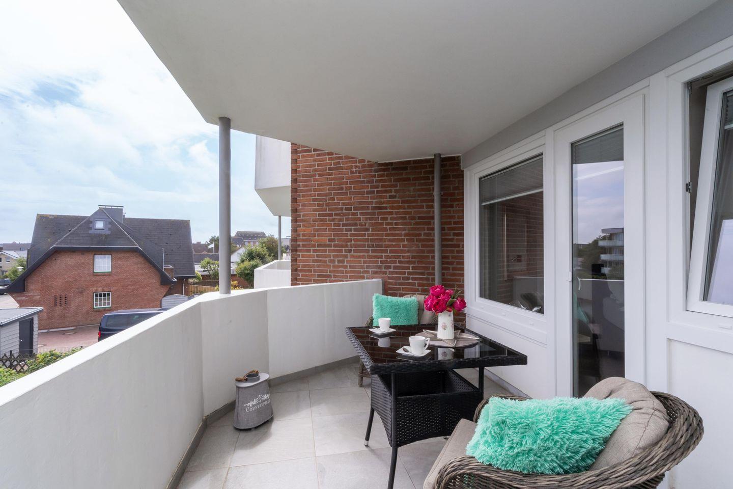 Moderne ca. 52 m² große Ferienwohnung für bis zu 2 Personen mit schönem, großzügigem Balkon in stadt- und strandnaher Lage. Inklusive WLAN sowie zugehörigem PKW-Stellplatz.