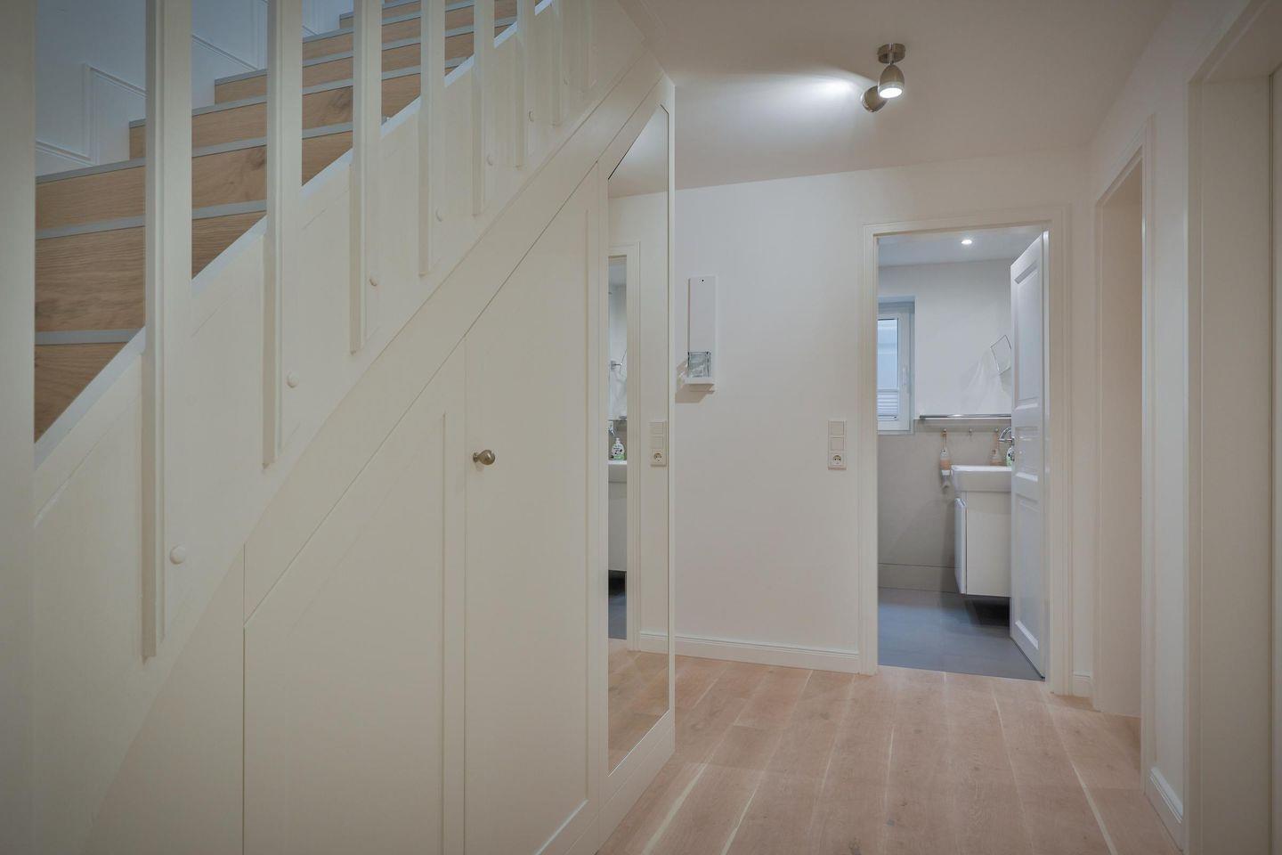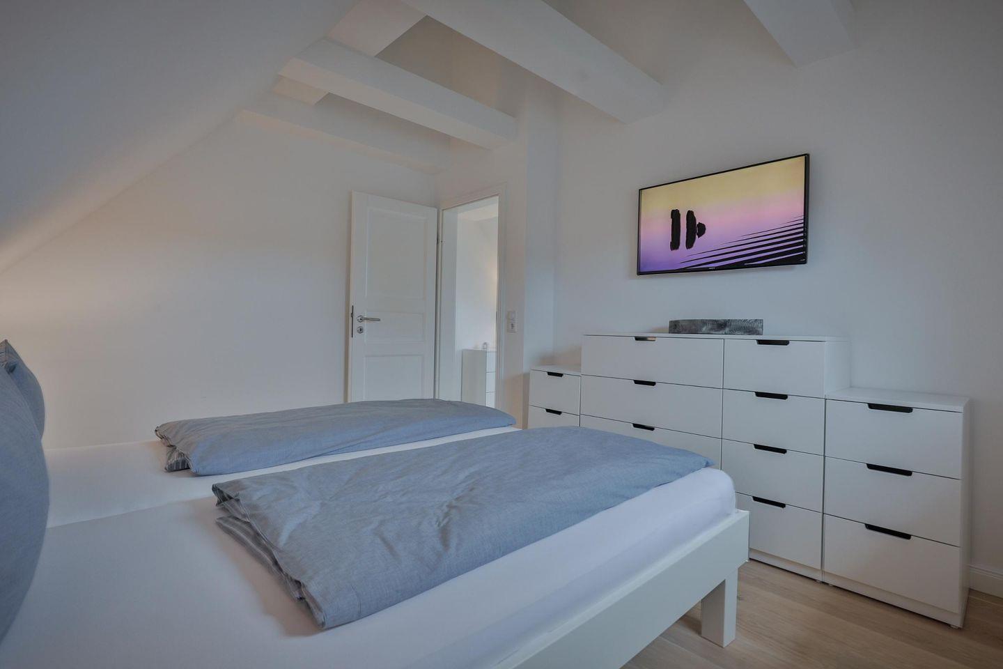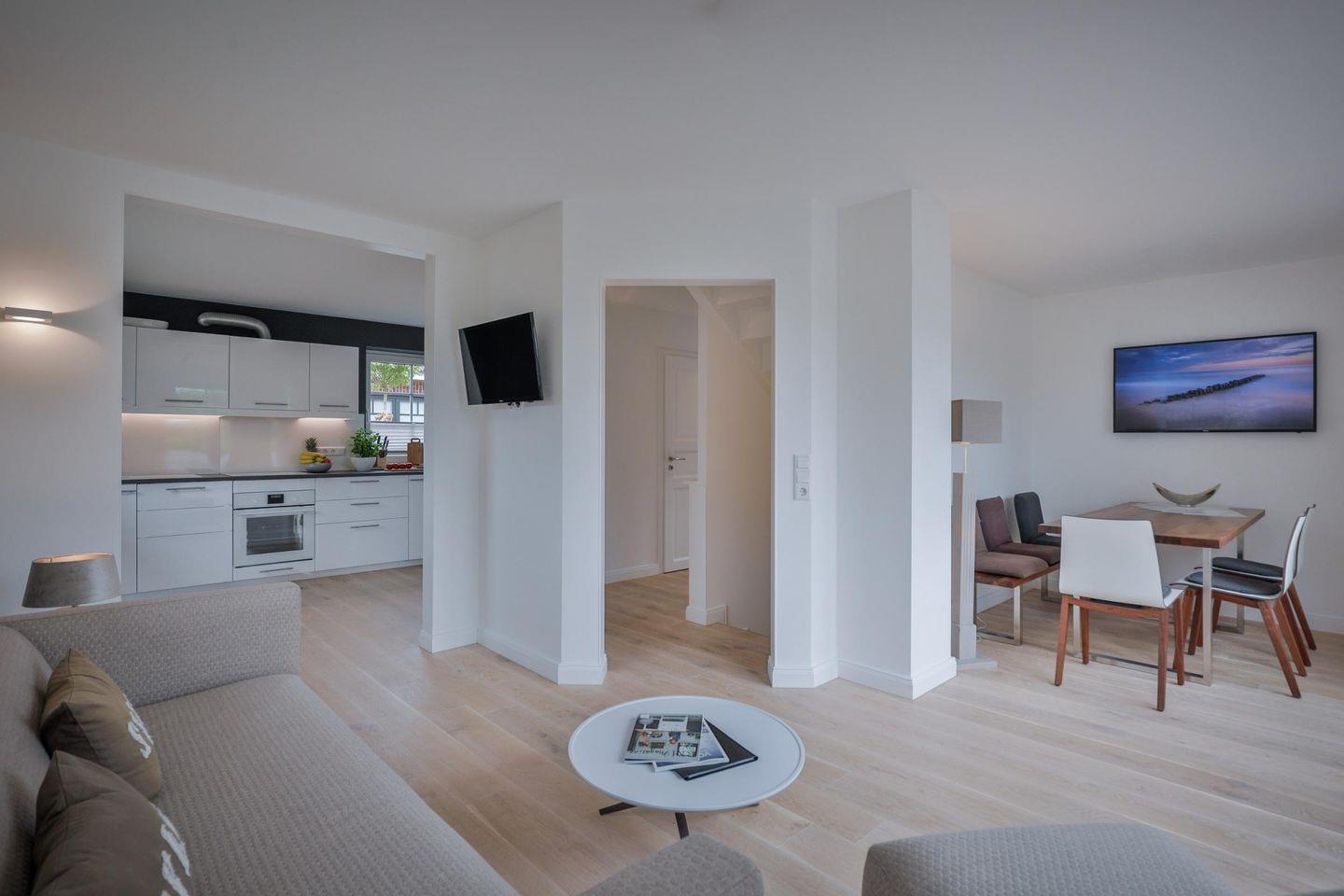Dieses moderne ca. 100 m² große 5-Sterne Ferienhaus für bis zu 4 Personen befindet sich in einer zentralen Lage von Westerland und bietet Ihnen eine Kombination aus hochwertiger Ausstattung sowie absoluten Komfort. Im Erdgeschoss erwartet Sie ein lichtdurchflutetes Wohnzimmer mit zeitgemäßer, eleganter Essecke und offener Verbindung zur modernen Wohnküche. Diese ist voll ausgestattet und verfügt über einen Geschirrspüler. Ein modernes, helles Duschbad befindet sich ebenfalls im Erdgeschoss. Das Dachgeschoss bietet Ihnen zwei Doppelschlafzimmer sowie ein großzügiges Badezimmer samt Badewanne. Absolute Entspannung bietet Ihnen der Wellnessbereich im Souterrain, ausgestattet mit einer großzügigen Sauna und einem Duschbad. Nutzen Sie zudem gerne die schöne Terrasse und den angrenzenden Garten mit Gartenmöbeln und einem Strandkorb (in der Saison). Die Fußbodenheizung im Ferienhaus sorgt auch an kalten Tagen für eine warme, gemütliche Atmosphäre. Kostenloses WLAN, Flat TVs in allen Wohn- und Schlafräumen, ein zugehöriger PKW-Stellplatz vor dem Haus, eine Waschmaschine sowie ein Wäschetrockner stehen Ihnen zur Verfügung. Haustiere sind nicht erlaubt.