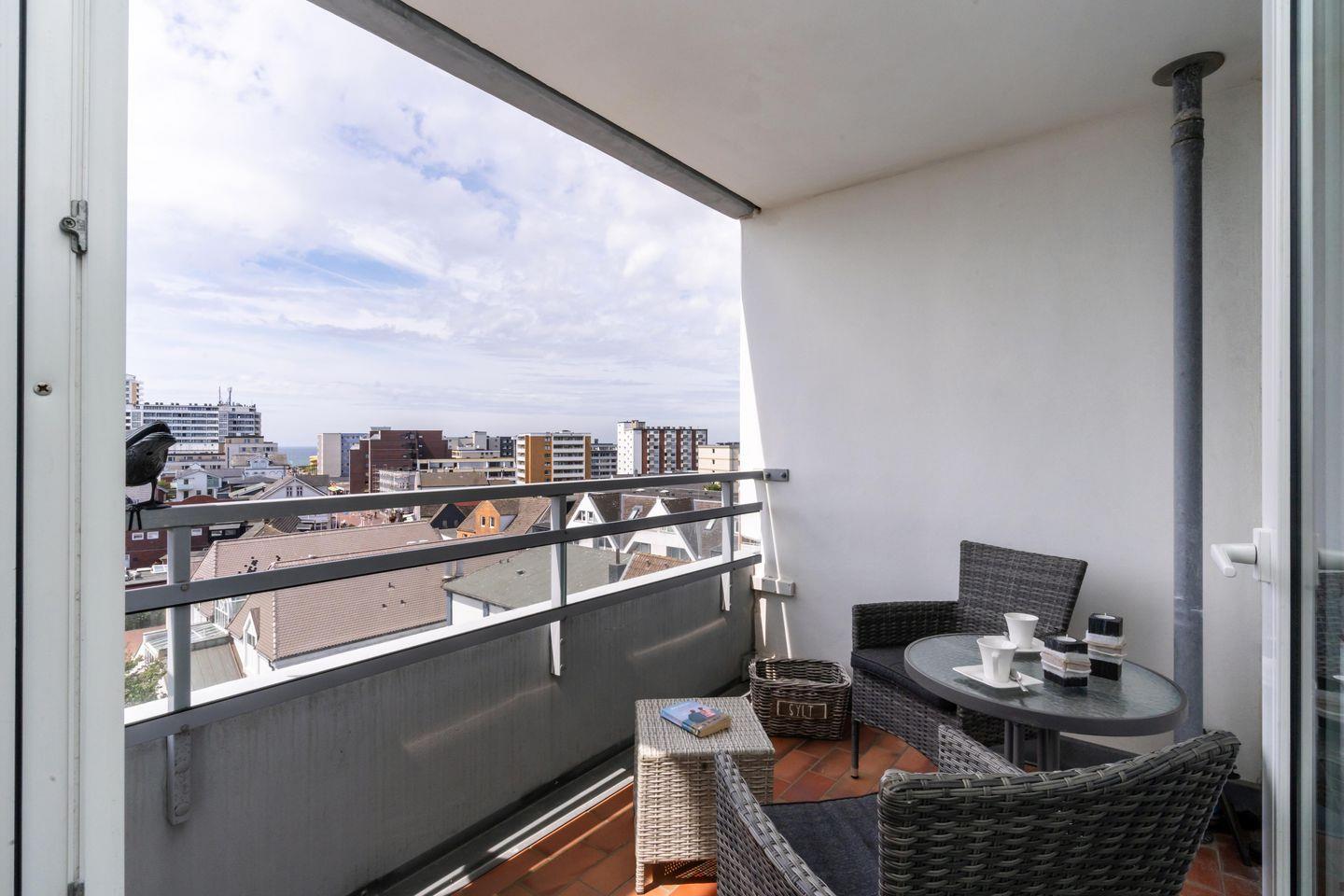Moderne ca. 55 m² große Ferienwohnung für bis zu 2 Personen mit schönem Westbalkon samt Meerblick in stadt- und strandnaher Lage. Inklusive WLAN sowie zugehörigem PKW-Stellplatz.