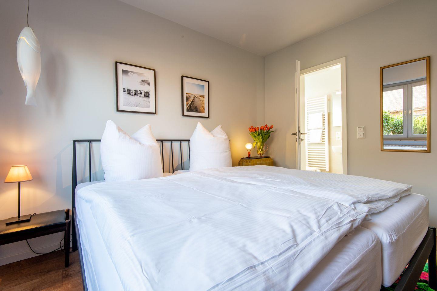 Diese gemütlich eingerichtete ca. 85 m² große Ferienwohnung für bis zu 6 Personen befindet sich in einer direkten Strandlage von Westerland. Es erwartet Sie ein liebevoll eingerichtetes Wohn- und Esszimmer mit angeschlossener Küche. Die Küche samt Geschirrspüler ist gut ausgestattet. Die Ferienwohnung verfügt über ein Doppelschlafzimmer (180 cm) mit angeschlossenem Bad en Suite, einem kleinen Schlafzimmer mit französischem Doppelbett (140 cm) sowie einem Schlafzimmer mit Doppelbett (160 cm). Die zwei Badezimmer verfügen über eine moderne Regenwalddusche sowie Tageslicht. Kostenloses WLAN, eine Waschmaschine sowie ein Wäschetrockner stehen Ihnen zur Verfügung. Haustiere sind willkommen. Für Ihr Auto besteht eine öffentliche Parkmöglichkeit direkt am Grundstück auf der Uthlandstraße. Be- und Entlademöglichkeiten gibt es direkt in der Einfahrt.