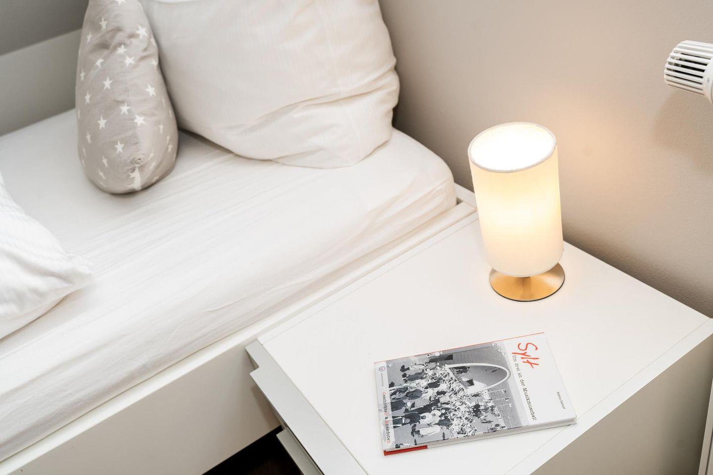 Appartement Lille Kamp 2 erstreckt sich über zwei schick gestaltete Etagen und hat einen kleinen Balkon.