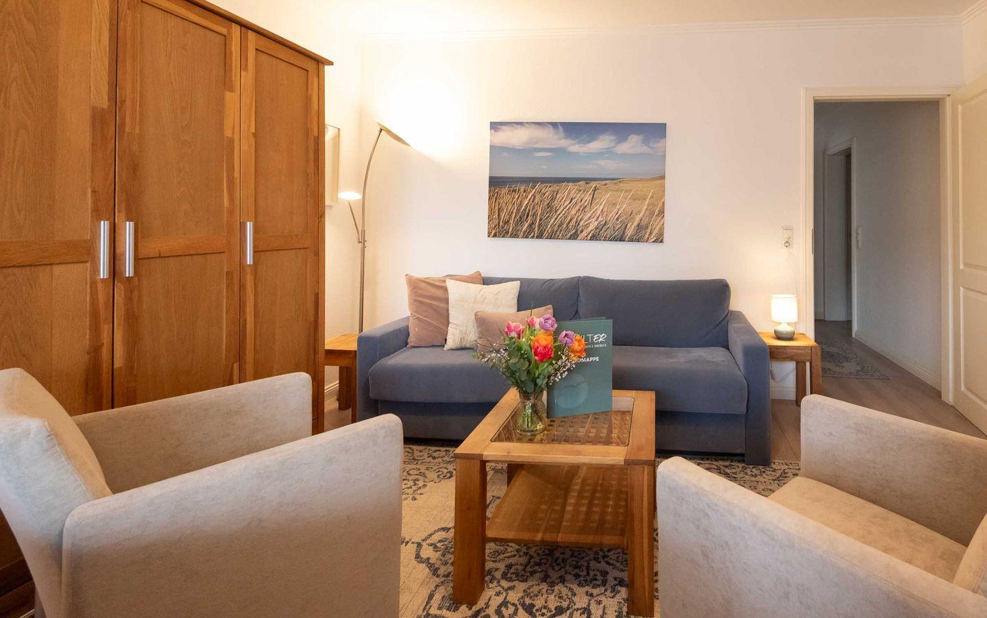 Für den Sylturlaub in Westerland bietet diese 2-Zimmerwohnung mit 45 m² Größe die ideale Basis. Bis zu 4 Personen verbringen hier traumhaftschöne Ferien in bester Strandlage. Helle Atmosphäre und großer Balkon inklusive.