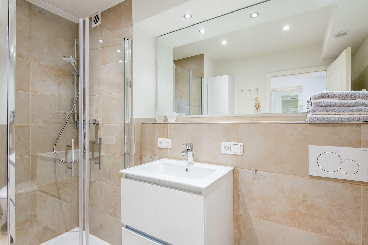 Badezimmer: Modernes und neu renoviertes (April 2021) Duschbad mit WC.