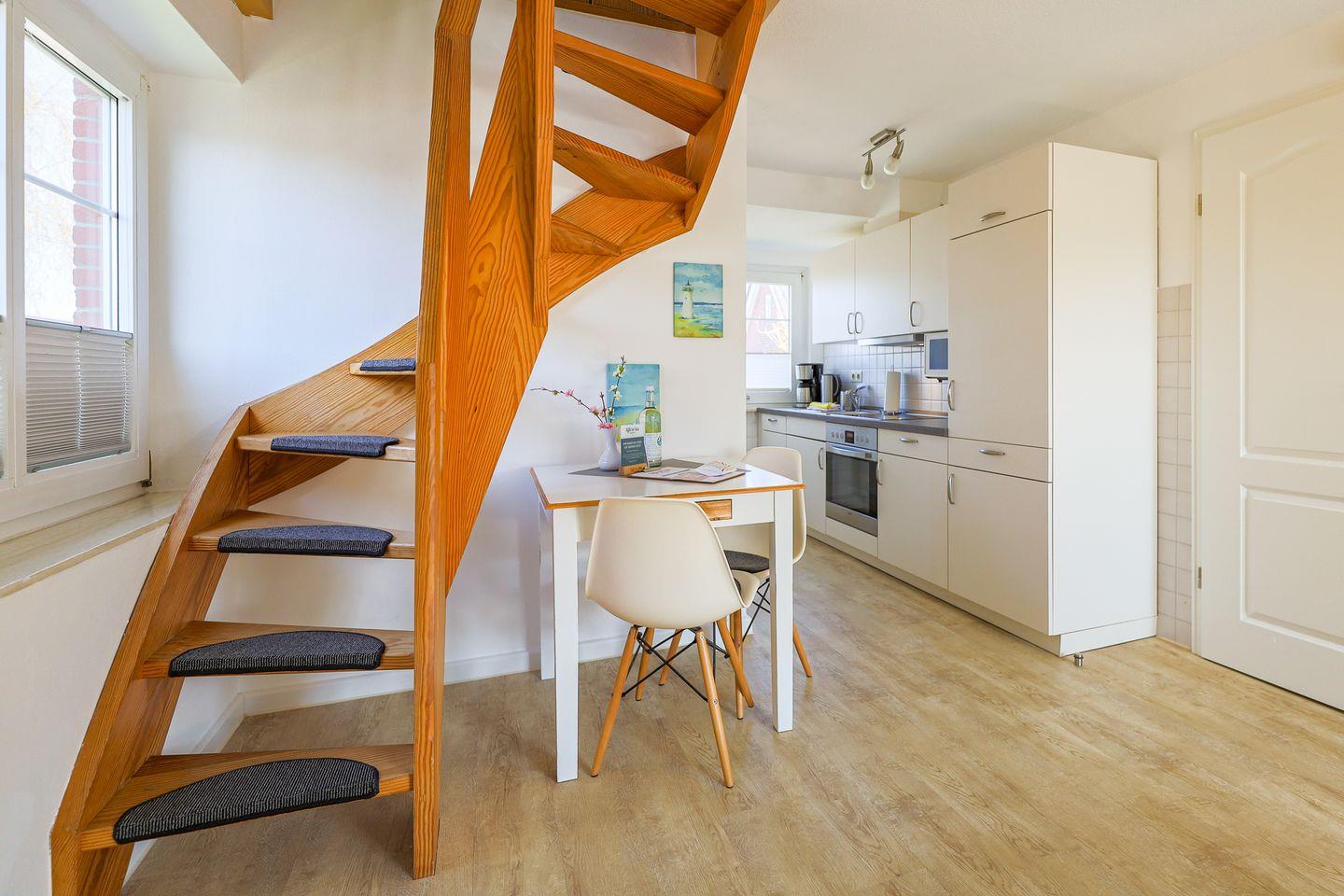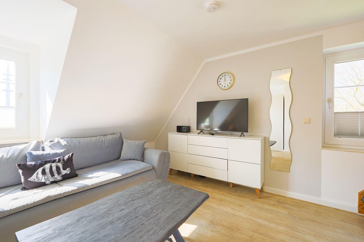 Im Appartement Wellenreiter sorgt frisch-nordisch-gemütliches Flair - verteilt auf zwei Ebenen - für schöne Urlaubstage.