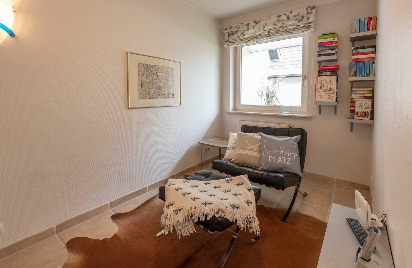 Fernsehzimmer: Auf der gleichen Ebene lädt ein Fernsehzimmer mit gemütlicher Liege zum Verweilen ein.