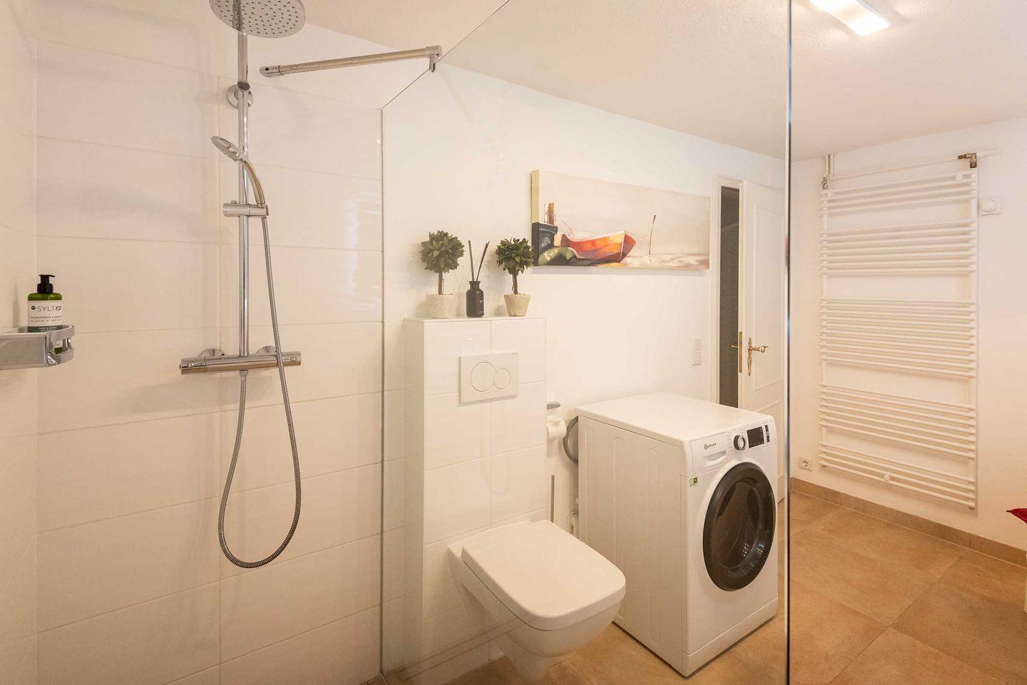 Badezimmer 2: großzügiges Duschbad mit WC und Fenster.