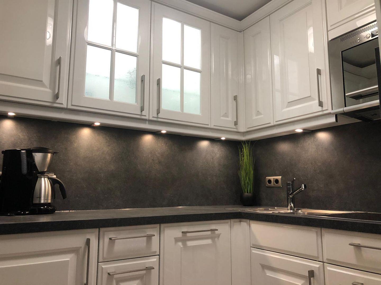 • Küche: separate Küche mit Fenster, Ceranfeld, Mikrowellen-/Grillkombination mit integrierter Abzugshaube, Geschirrspülmaschine, Kühlschrank mit Gefrierfach