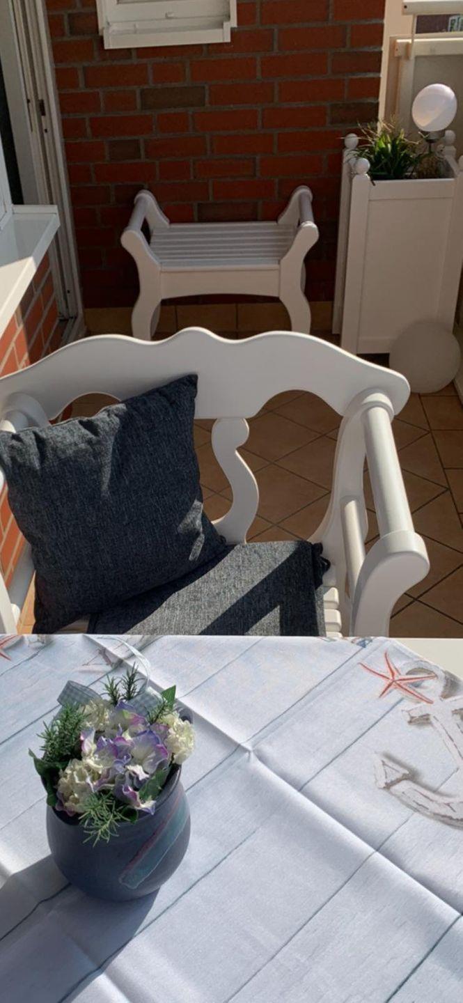 • Balkon: Sonniger, geräumiger Westbalkon. Ausgestattet mit original Sylter Friesenmöbeln