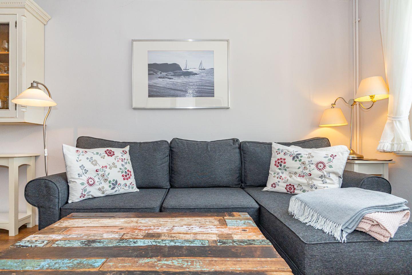 Die Ferienwohnung 1 im Haus Strandberg verfügt über einen kleinen Flur, über den man in das Duschbad mit WC und in den offenen Wohn- und Essbereich gelangt. Die offenen Küche ist ausgestattet mit einem Geschirrspüler, Kaffeemaschine, Nespressomaschine und Ceranfeld. Von dort aus geht es in den gemütlichen Wohnbereich mit Schlafsofa, welches mit einem Fernseher und einem DVD-Player ausgestattet ist. Das Schlafzimmer mit Doppelbett und einem geräumigen Kleiderschrank ist über das Wohnzimmer erreichbar. Im Sommer stehen Ihnen im Gemeinschaftsgarten 2 Strandkörbe zur Verfügung. Der Garten kann von allen 3 Parteien des Hauses genutzt werden. Die Ferienwohnung verfügt über einen WLAN-Anschluss. Kostenfreie Parkmöglichkeiten finden Sie an der Straße direkt am Haus. Ein guterzogener Hund ist nach vorheriger Anmeldung erlaubt (10,- € pro Tier/Tag).