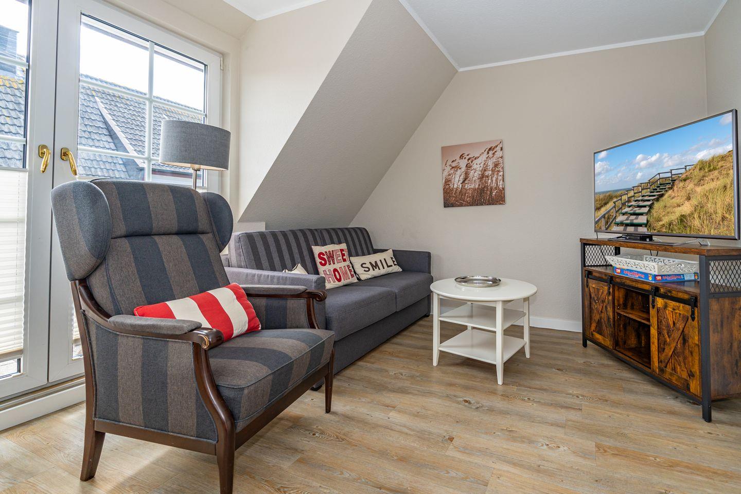 Diese wunderschöne 3-Zimmer-Ferienwohnung im Norden von Westerland ist unweit vom Strand gelegen. Auch die Westerländer Fußgängerzone ist fußläufig zu erreichen. Die Ferienwohnung (ca. 61 qm) ist auf zwei Ebenen aufgeteilt, Obergeschoss und Dachgeschoss.