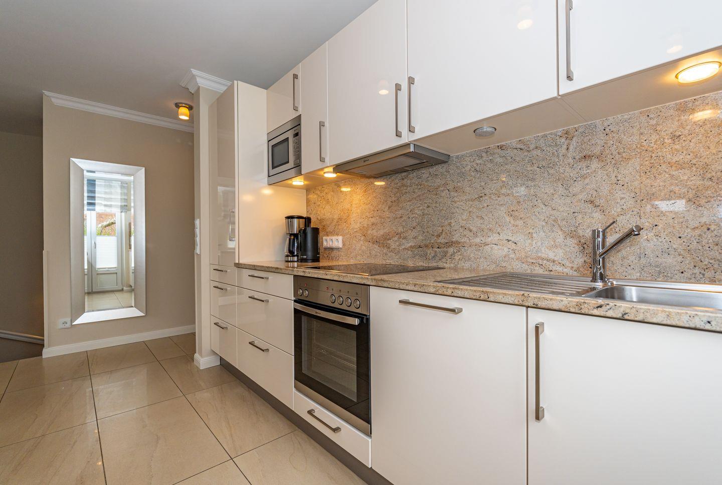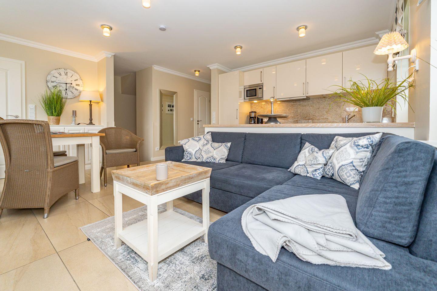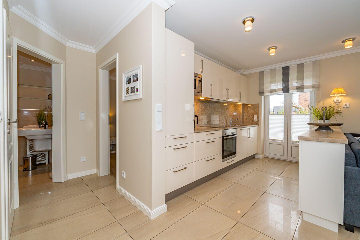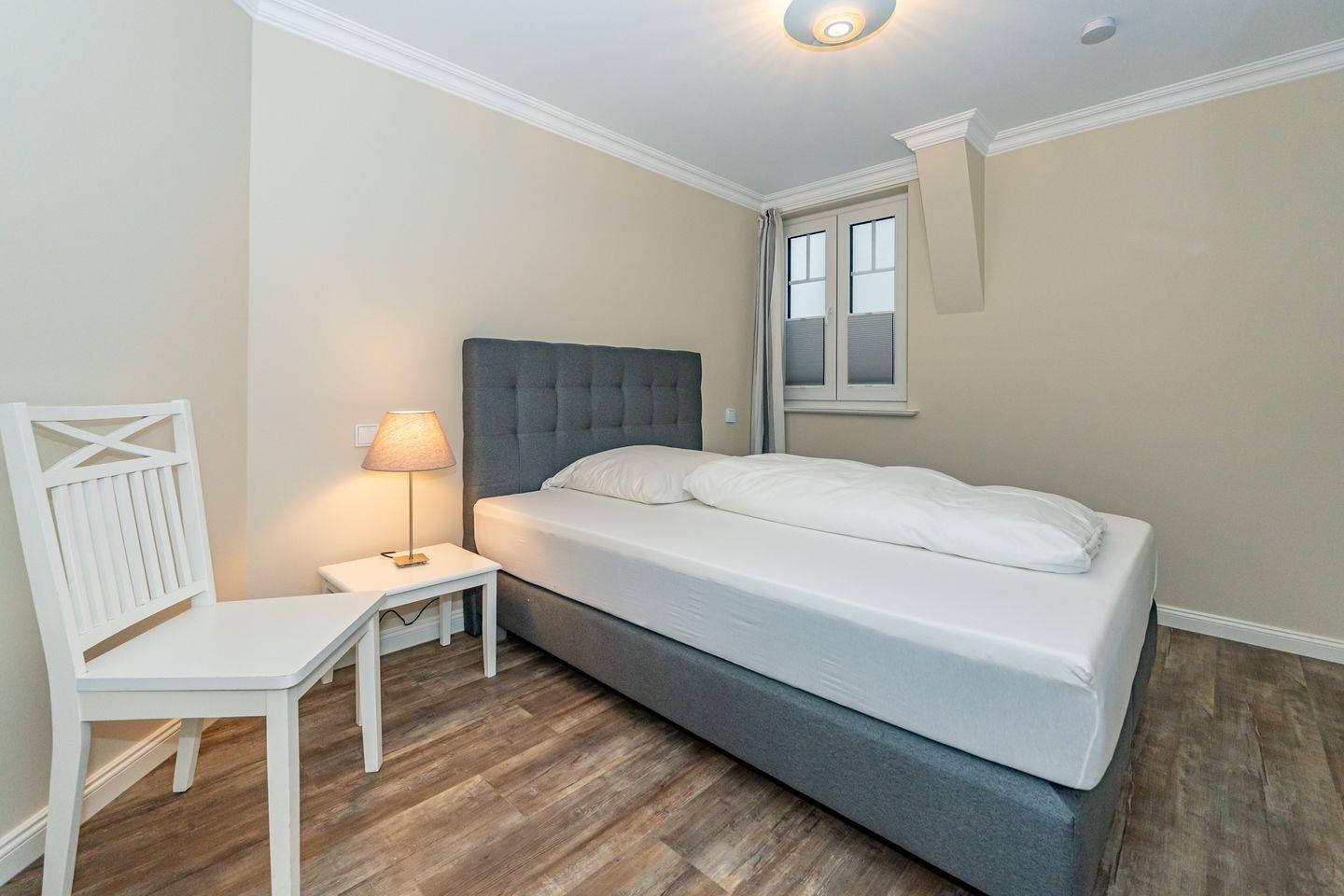 Die offene Küche mit Essgruppe, Backofen, Herd, Spülmaschine und Mikrowelle, sowie ein Schlafzimmer mit gemütlichen Doppelbett und ein Duschbad mit WC befinden sich ebenso auf dieser Ebene. Im Souterrain befinden sich zwei weitere Schlafzimmer, eines mit einem Doppelbett und eines mit einem Bett im französischen Maß. In der gesamten Ferienwohnung befinden sich geräumige, weiße Einbauschränke die Ihnen viel Stauraum bieten. Das Highlight dieser Ferienwohnung erwartet Sie ebenfalls im Untergeschoss. Das Badezimmer mit Sauna, Badewanne und Dusche/WC lässt auch an stürmischen Tagen keine Wünsche offen und sorgt für Entspannung pur. Waschmaschine und Trockner befinden sich in einem separaten Raum. Ein Pkw-Stellplatz steht Ihnen direkt am Haus zur Verfügung. Haustiere sind in dieser Ferienwohnung nicht erlaubt. Bitte beachten Sie, dass diese Ferienwohnung eine Nichtraucherwohnung ist.