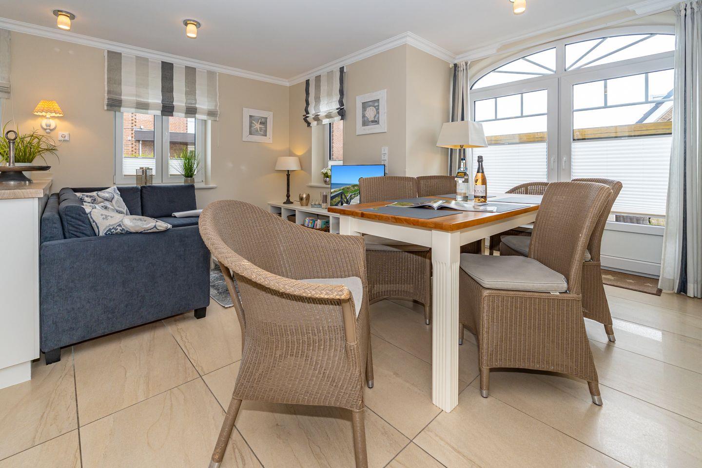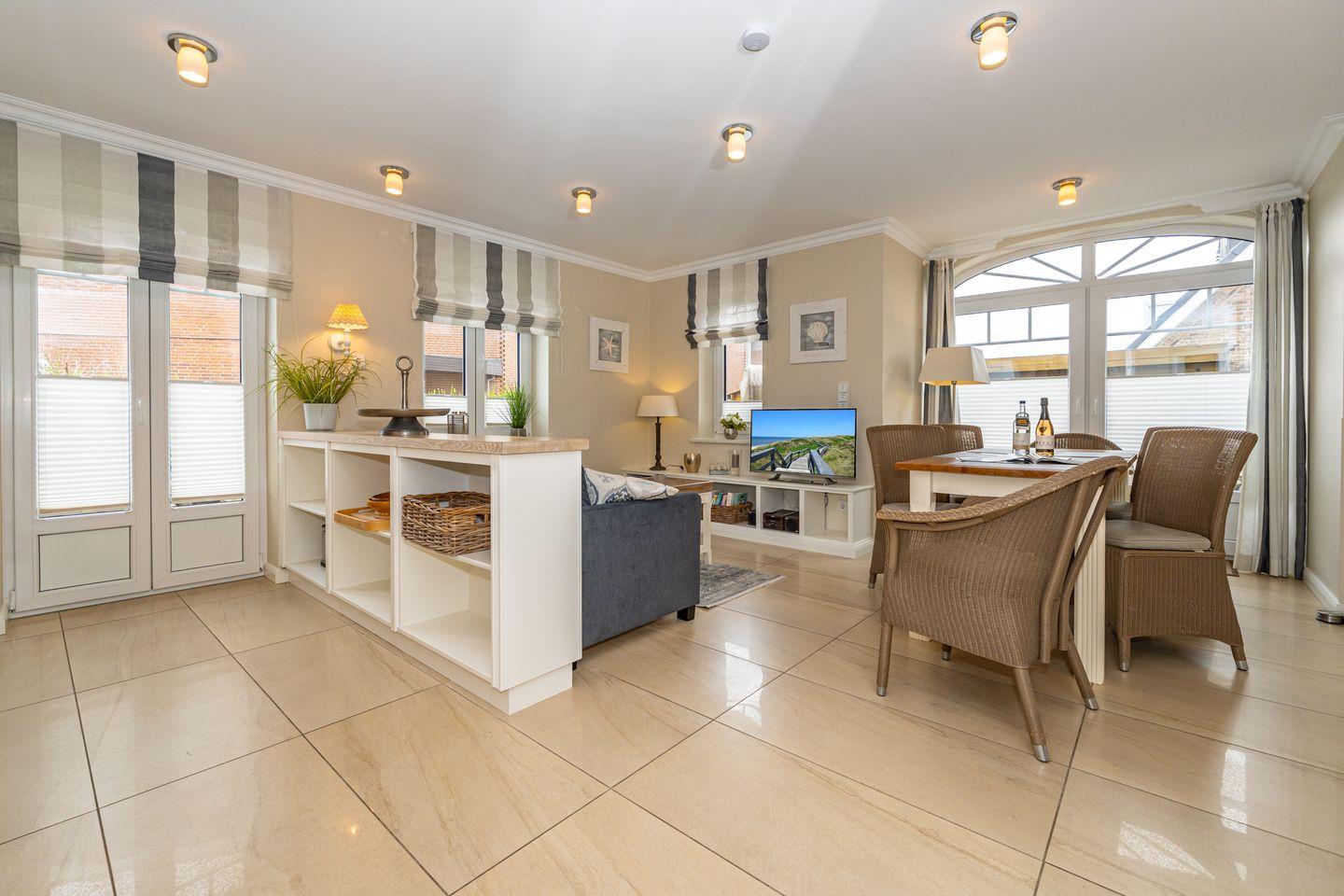 Strand- und stadtnah liegt diese schöne 4-Zimmer-Ferienwohnung (ca. 108 qm) mit Sauna im Norden von Westerland. Die Ferienwohnung verfügt über einen großen Garten und Terrasse, mit hochwertiger Sitzgruppe, in Süd-West-Ausrichtung. Im EG dieser Ferienwohnung befinden sich das gemütliche Wohnzimmer mit direktem Zugang zum Außenbereich.