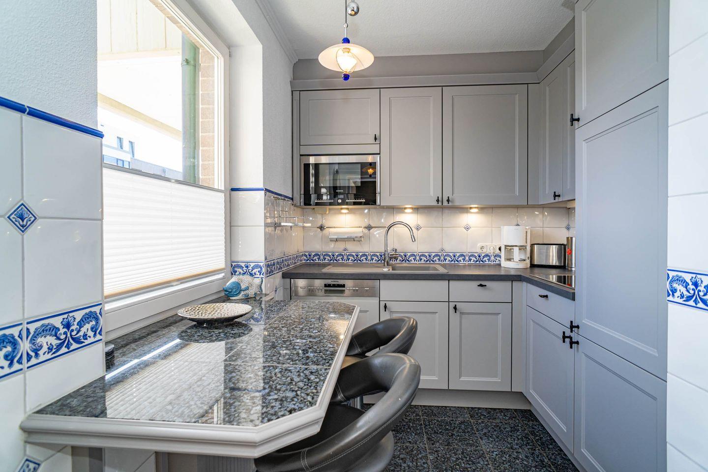 Diese in unmittelbarer Strandnähe liegende 2-Zi.-Whg. (1. OG, ca. 52 qm) befindet sich im Appartementhaus Margaretheneck mit zwölf Wohneinheiten. Die Wohnung verfügt über einen Wohn-/Essbereich teils neu möbliert wie z.B. ein neues Sofa (Flachbild-TV, WLAN) mit einer angrenzenden, hochwertigen Einbauküche und Südbalkon inkl. Dünenblick. Das Schlafzimmer mit Doppelbett (180 x 200 cm) und das Duschbad/WC sind ebenfalls ansprechend gestaltet. Münzwaschmaschine und -trockner befinden sich zur gemeinschaftlichen Nutzung im Haus. Die Ferienwohnung liegt in unmittelbarer Strandnähe im Stadtzentrum. Von dort aus gelangen Sie wunderbar zu Fuß in zahlreiche Shoppingläden, Einkaufsläden, Restaurants und vielem mehr um den Urlaub schön zu gestalten. Ein Pkw-Stellplatz steht Ihnen in der Tiefgarage mit Doppelparksystem zur Verfügung. Bitte beachten Sie das dieser nicht für große Autos geeignet ist (max. Höhe 1,5 m , max. Länge 4,8m , max. Breite 1,9m). Ein guterzogener Hund ist nach vorheriger Anmeldung erlaubt (10,- € pro Tier/Tag). Bitte beachten Sie, dass diese Ferienwohnung eine Nichtraucherwohnung ist.