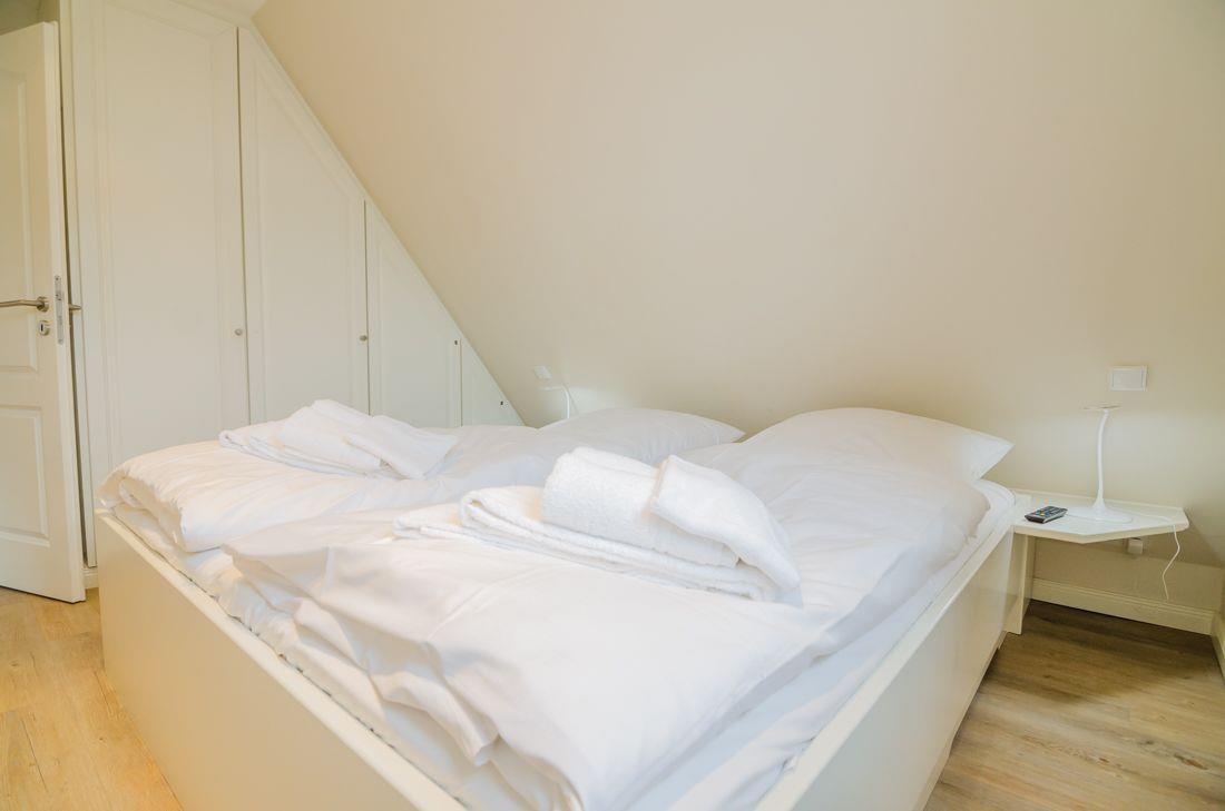 Die Ferienwohnung Steffi liegt stadt- und strandnah. Über Ihre eigene Haustür im Erdgeschoss betreten Sie den Eingangsbereich mit Garderobe. Von dort aus gelangen Sie über eine Treppe in das 1OG. der Wohnung, wo sich der Wohn- und Essbereich mit Sofa und TV befindet. Von hier haben Sie Zugang zum westlich ausgerichteten Balkon mit Gartenmöbeln. Die voll ausgestattete, offene Küche (Nespressomaschine, Mikrowelle, Backofen, Geschirrspüler, Toaster, Wasserkocher) grenzt an den Wohn- und Essbereich an. Von dort aus haben Sie Zutritt zum Schlafzimmer mit Doppelbett, TV und Kleiderschrank sowieso zum Badezimmer mit Dusche, WC, Waschbecken und Waschmaschine. Über eine Treppe gelangen Sie ins Dachgeschoss der Ferienwohnung wo sich das zweite Schlafzimmer mit Kojenbett und ein weiteres Badezimmer ausgestattet mit Badewanne, WC und Waschbecken befindet. Ein PKW-Stellplatz steht Ihnen am Haus zur Verfügung. Bitte beachten Sie, dass diese Wohnung eine Nichtraucherwohnung ist. Haustiere sind in dieser Ferienwohnung nicht gestattet.