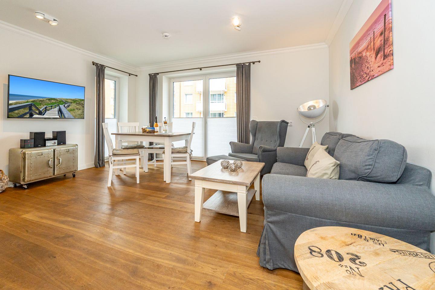 Nur 200 Meter vom Sandstrand entfernt, genießen Sie hier entspannte Tage am Meer. Die Ferienwohnung verfügt über einen Balkon mit Gartenmöbeln, eine voll ausgestattete offene Küche und ein gemütliches Wohnzimmer. Ebenso steht Ihnen ein Tiefgaragenstellplatz zur Verfügung.