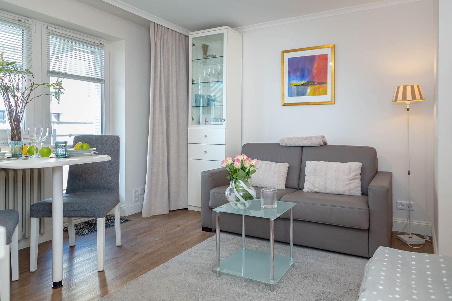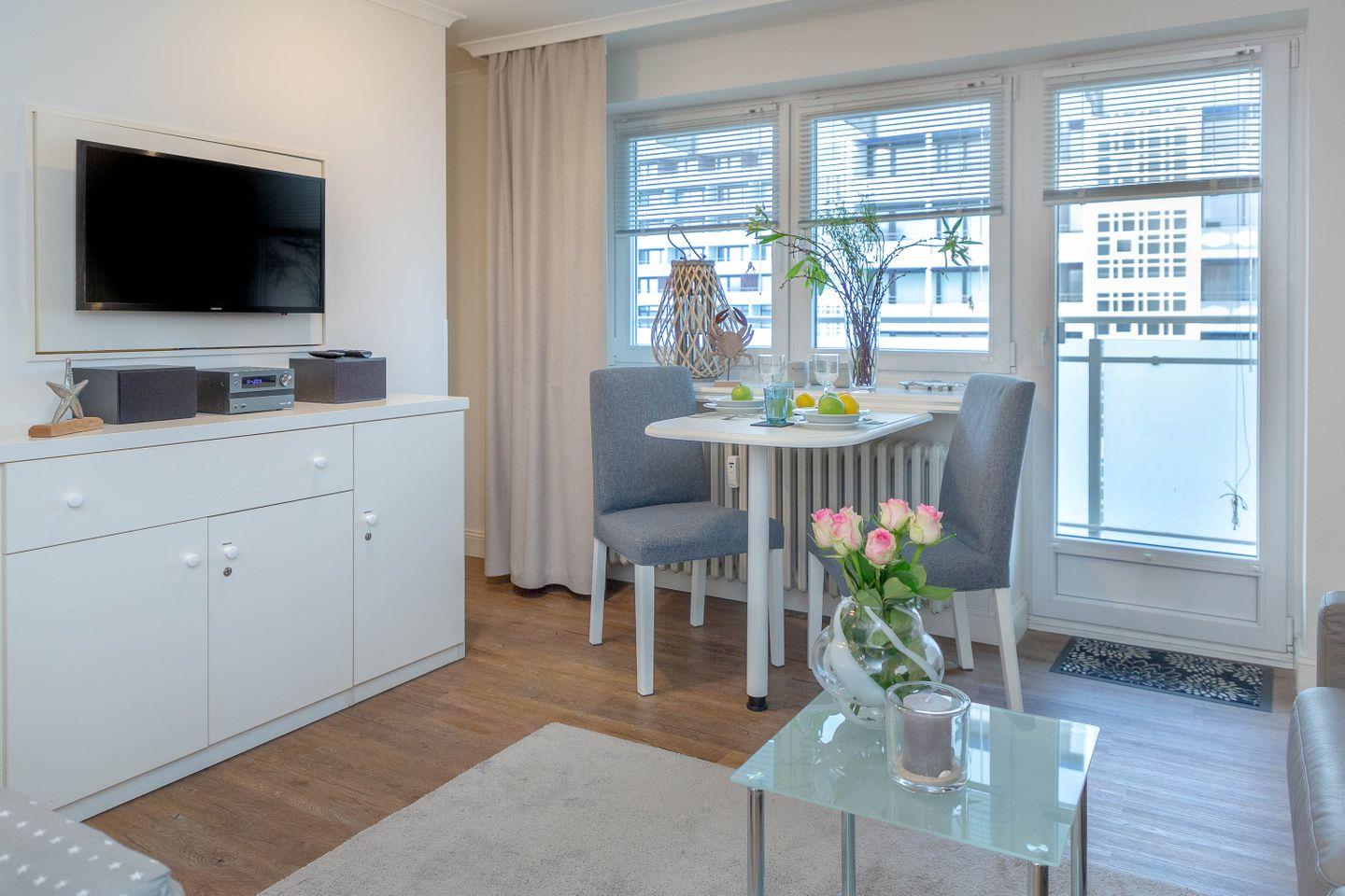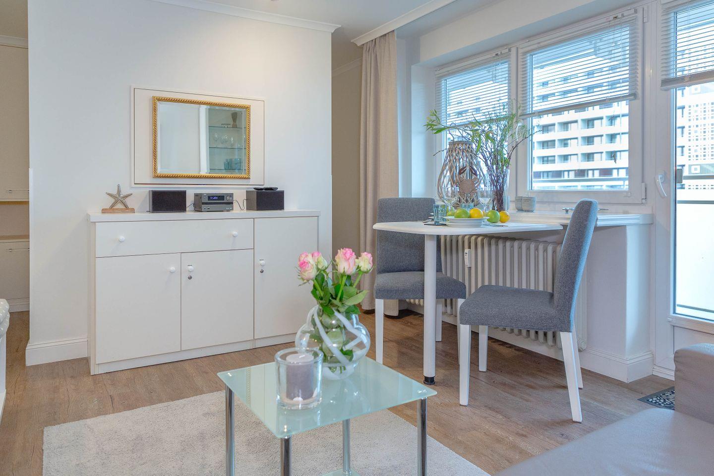 Exklusives 1-Zimmerapp. für geh. Ansprüche. Klare Linien, klares Design, sehr gute Raumaufteilung bei optimaler, moderner Einrichtung. ca. 30m² in direkter Strandlage gegenüber dem Schwimmbad, in der Andreas-Dirks-Straße 1