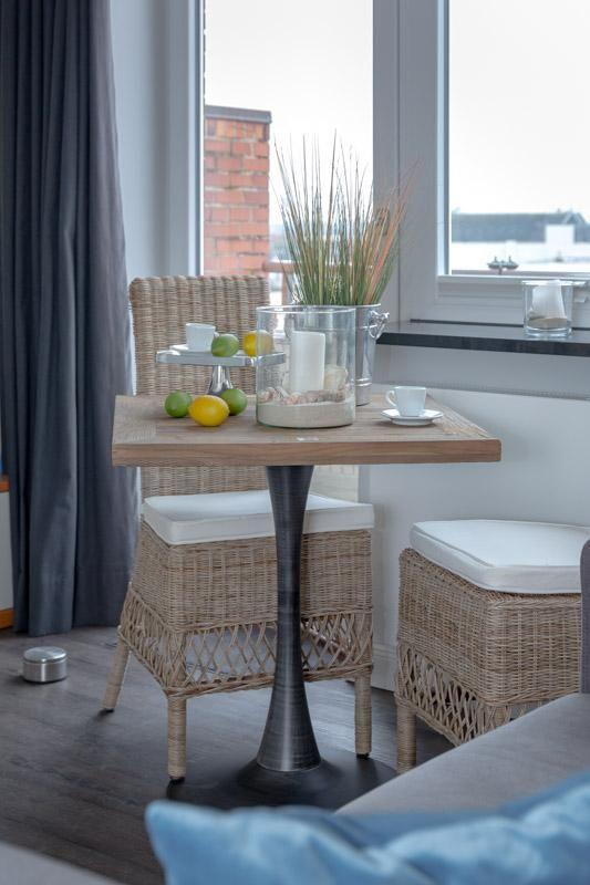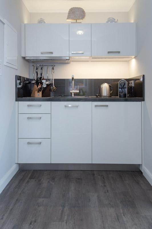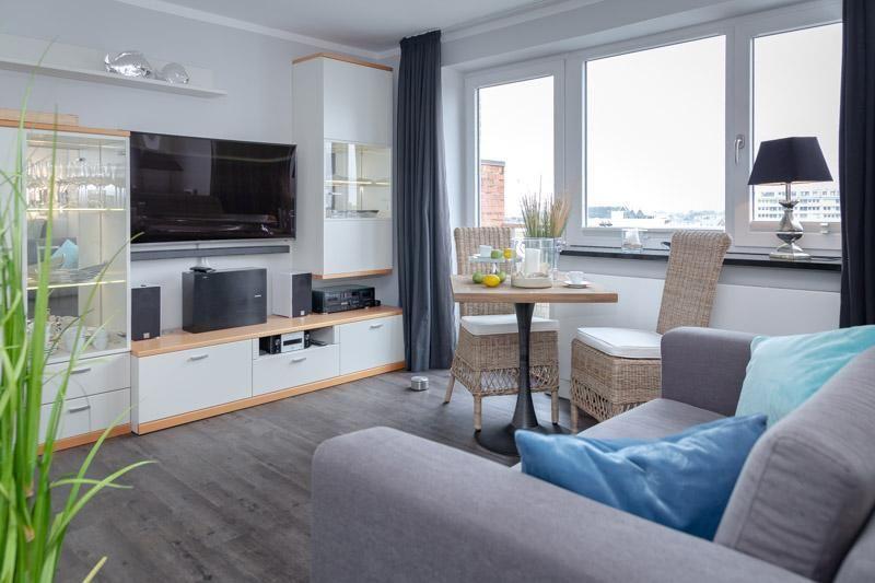 Top modernes 1-Zimmerappartement mit besten Aussichten! Das ca. 30m² große Appartement befindet sich in der obersten Etage des Hauses Andreas-Dirks-Str. 1, direkt am Westerländer Hauptstrand und der Promenade. Diese Wohnung ist mit modernem Designboden in Holzoptik ausgelegt und verfügt über ein top modernes Duschbad (bodentiefe Dusche) mit Fußbodenheizung. Moderne Einbauküche von Nehl (Nespresso Kapsel Maschine u. "normale" Filtermaschine vorhanden), sowie ein hell und modern eingerichteter Wohnraum mit einem herrlich großzügigen Balkon zur sonnigen Ostseite. Hier kann man in den schönen Sommermonaten bereits früh morgens seinen ersten Kaffee ungestört (keine Nachbarn!) in der Frühsonne genießen. Im kombinierten Wohn- / Schlafbereich (mit kleiner Essecke) gibt es ausreichend Stauraum für Ihre Kleidung. Das Bett in 1,60 x 2,00m. Ein TV (Kabel TV im Haus), BOSE Set und W-LAN bieten viele Entertainmentmöglichkeiten. Die Wohnung befindet sich in der ruhigsten Lage des Haus (am Ende des Hausflures). Hier ein Hinweis: Das Haus verfügt über einen Fahrstuhl bis in die 4. Etage. Es sind daher ca. 2 x 6 Stufen zur 5. Etage zu laufen. Im Haus befindet sich eine Gemeinschafts- Waschküche mit Münzautomaten. Für Ihre Fahrräder gibt es den abgeschlossenen Bereich im Innenhof zum Abstellen. Ein tolles Luxus Appartement für 2 Personen.