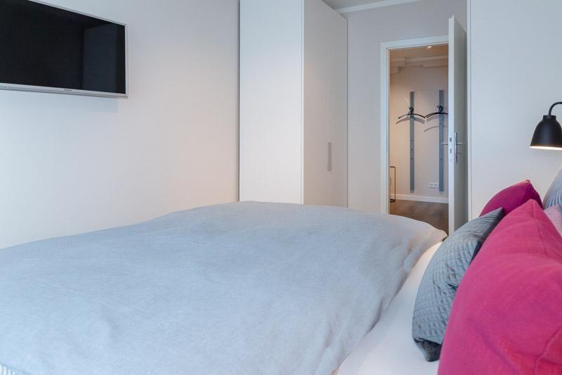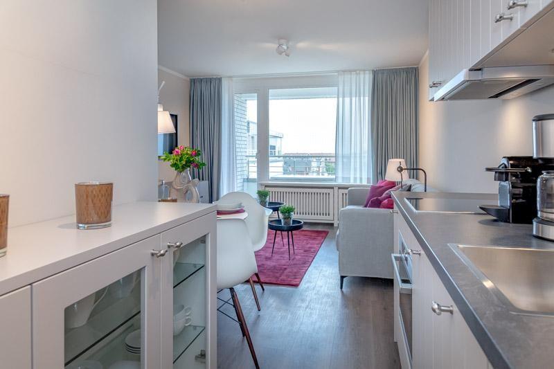 Wohnung Middenmang (plattdüütsch für mittendrin). Der Name sagt doch bereits alles: Hier sind Sie mittendrin im Leben, am Strand, in der City, in Westerland, auf SYLT. Bei ca 45m² Wohnfläche finden Sie in diesem Schätzchen alles für einen optimalen Urlaub. Dieses wunderschöne Appartement wurde im Mai 2019 fertig gestellt. Im gehobenen Wohnambiente dieses Appartements werden Sie sich schnell zu Hause fühlen. Designer Möbel, schicke Farben, alle technischen Begehrlichkeiten, die man für einen eventuellen Regentag so braucht sind ebenfalls vorhanden. Die Wohnung befindet sich in der 4. Etage des Hauses. Der neue schicke, ebenerdiger Fahrstuhl bringt Sie direkt bis vor die Tür. Im Eingangsbereich / Flur der Wohnung befindet sich die Garderobe und ein komfortabler großer Kleiderschrank. Im komfortablen Schlafzimmer befinden sich neben den beiden Kleiderschränken (mit Safe), das super bequeme Schramm Boxspring Doppelbett (180x200). Der helle großzügige Wohnbereich ist mit Designermöbeln und in einer erstklassigen Schüller Küche ausgestattet worden. Im Wohnbereich: Schickes hochwertiges 2er Sofa ( mit Schlaffunktion), Essplatz, großes Flat TV mit Netflix ©Funktion. W-LAN ist hier selbstverständlich auch vorhanden. Die Küche ist voll ausgestattet. Hier fehlt es Ihnen an NICHTS. Genießen Sie die top Lage im Herzen der Insel. Genießen Sie die Ruhe in der nach Süden ausgerichteten Wohnung. Freuen Sie sich auf ein Frühstück auf dem herrlich sonnigen Balkon mit Blick auf die Dünen. Eine tolle Wohnung erwartet Sie. Dies ist eine Nichtraucherwohnung. Tierhaltung ist nicht gestattet. Die u.g. Preise gelten bei einer 2er Belegung. Für die 3. Person berechnen wir pro Tag zusätzlich € 25,-.