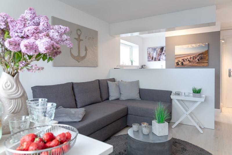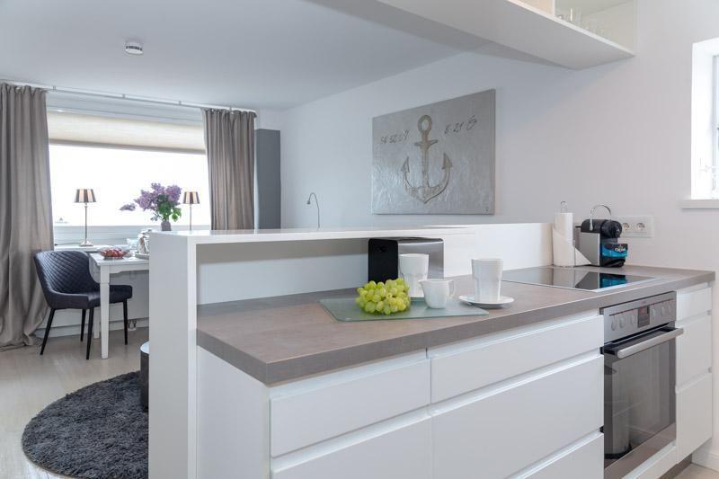 Westerland - Wohnung OCEAN POINT 1- Sehr schicke 2-Zimmerwhg. in der Bomhoffstraße 5 im Haus Sylter Residenz (nur wenige Augenblicke vom Strand entfernt) steht für unsere Gäste, die einen gehobenen Sylt Urlaub, zu einem ausgezeichneten Preis-/Leistungsverhältnis suchen, bereit. Genießen Sie die strandnahe Lage, die sonnige kleine Terrasse, sowie den fantastischen Ausblick auf die Nordsee aus der Wohnung im 6.OG. Genießen Sie top Lage mit dem kurzen Fußweg zur City und Promenade zum Sonnenuntergang. Bei ca. 45m² und einer neuen Raumgestaltung, mit ruhigem SZ (gr. Boxspring-Doppelbett, Einbauschrank) offener Küche und top modernem Bad (Kieselboden/Regendusche), mit schickem Interior, Flat-TV, DVD, iPOD-Radio Station, überzeugt diese Wohnung als Top Domizil für 2 Personen. Alle Annehmlichkeiten sind vorhanden: Geschirrspüler, W-LAN, Nespresso© Kapsel Maschine, kl. Balkon mit Meerblick. Diese Wohnung ist ein Nichtraucherappartement. Im Haus gibt es 2 ebenerdige Fahrstühle. Diese Wohnung befindet sich am Ende des Hausflures in ruhiger Lage im Haus. Tierhaltung ist nicht gestattet. In unmittelbarer Nachbarschaft ist ein Fahrradverleih, ein großer Lebensmittelmarkt, sowie das gesamte Angebot der Westerländer Innenstadt.