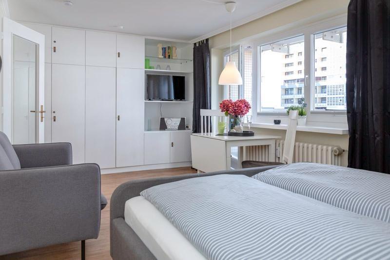 Die City ist in 1 Minute erreicht, ebenso die Promenade und der fantastische Sylter Sonnenuntergang. Ausstattung: Fußboden in Holzoptik, gr. Doppelbett, Vollbad, neue Küche mit Mikrowelle, sonniger Westbalkon. Radio und TV sind vorhanden. Fahrstuhl im Haus. Vor dem Haus befinden sich kostenpflichtige PKW Stellflächen. Nette Hunde sind willkommen (+ 10,00 € / Tag).