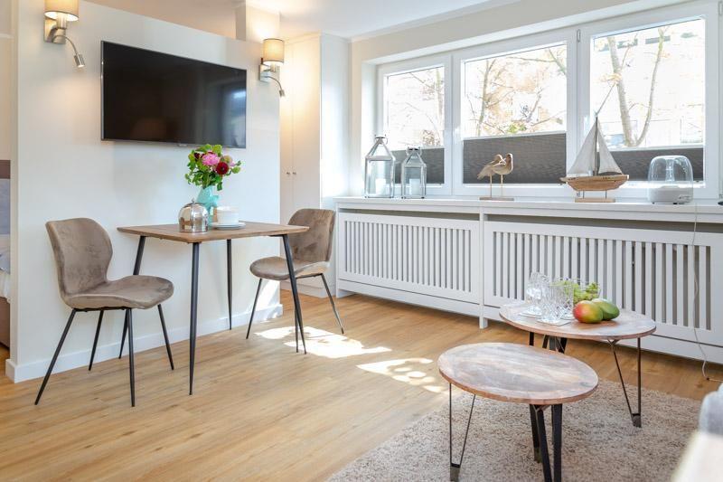 Ideal für 2 Personen, gerne mit Hund. Die eben fertig gestellte, nach Osten ausgerichtete, Wohnung befindet sich in direkter Strandlage in der Andreas Dirks Straße Nr. 1. Hier erwartet Sie ein modernes Ambiente, mit einer tollen Neugestaltung des ursprünglichen Zuschnitts. Das Appartement hat einen abgetrennten Schlafbereich (Boxspringbett 160x200), eine kleine im Wohnbereich integrierte Küchenzeile mit Backofen/ Mikrowellenfunktion, Ceran / Induktionsfeld, GS sowie eine Nespresso-Maschine. Neben dem Boxspringbett steht eine weitere Schlafmöglichkeit durch das bequeme Schlafsofa zur Verfügung. Das neu gestaltete Bad hat eine großzügige Dusche. Die Wohnung ist mit W-LAN, SMART-TV (Netflix) sowie einer Playstation ausgestattet. Ein ideales Domizil für 2 Personen. Auch ein netter kleiner Hund ist hier gerne willkommen (10€/Nacht). PKW Stellplätze finden Sie in der Straße / vor dem Haus ( kostenpflichtig). Im Haus stehen Ihnen im Gemeinschaftswaschraum eine Waschmaschine und ein Trockner zur Verfügung. Herzlich willkommen im Appartement LOBSTER.