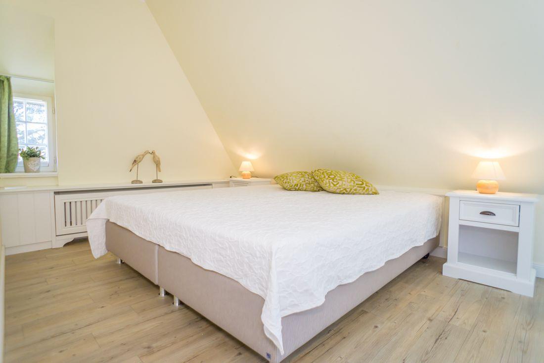 Das große Schlafzimmer ist mit einem Doppelbett ausgestattet.