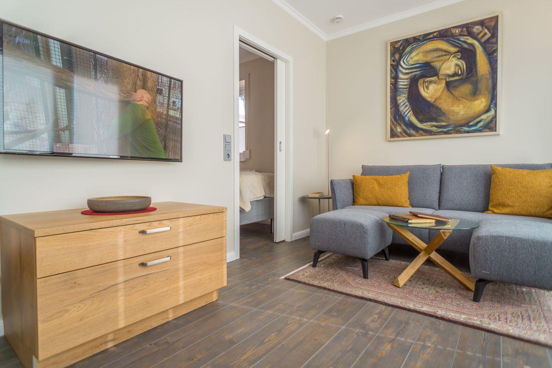 Geschmackvoll eingerichtete Wohn- und Essbereich ist mit LCD TV ausgestattet.