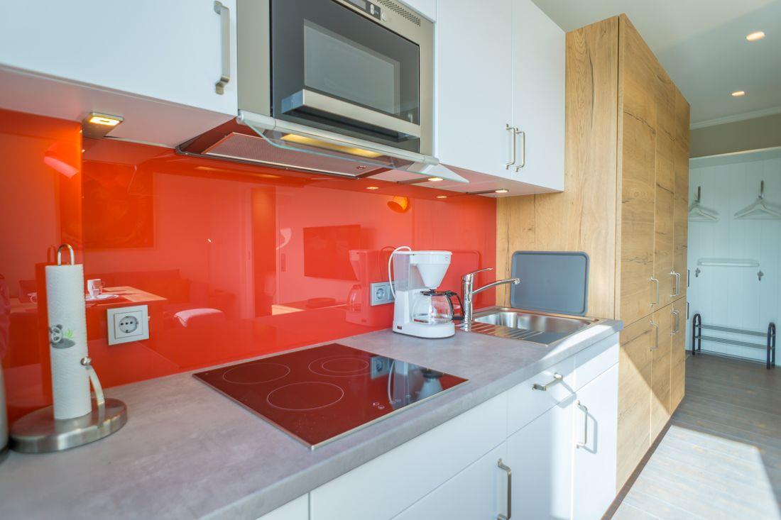 Küchenzeile verfügt u.a. über ein 3er Ceranfeld, eine Spülmaschine und ein Microwelle