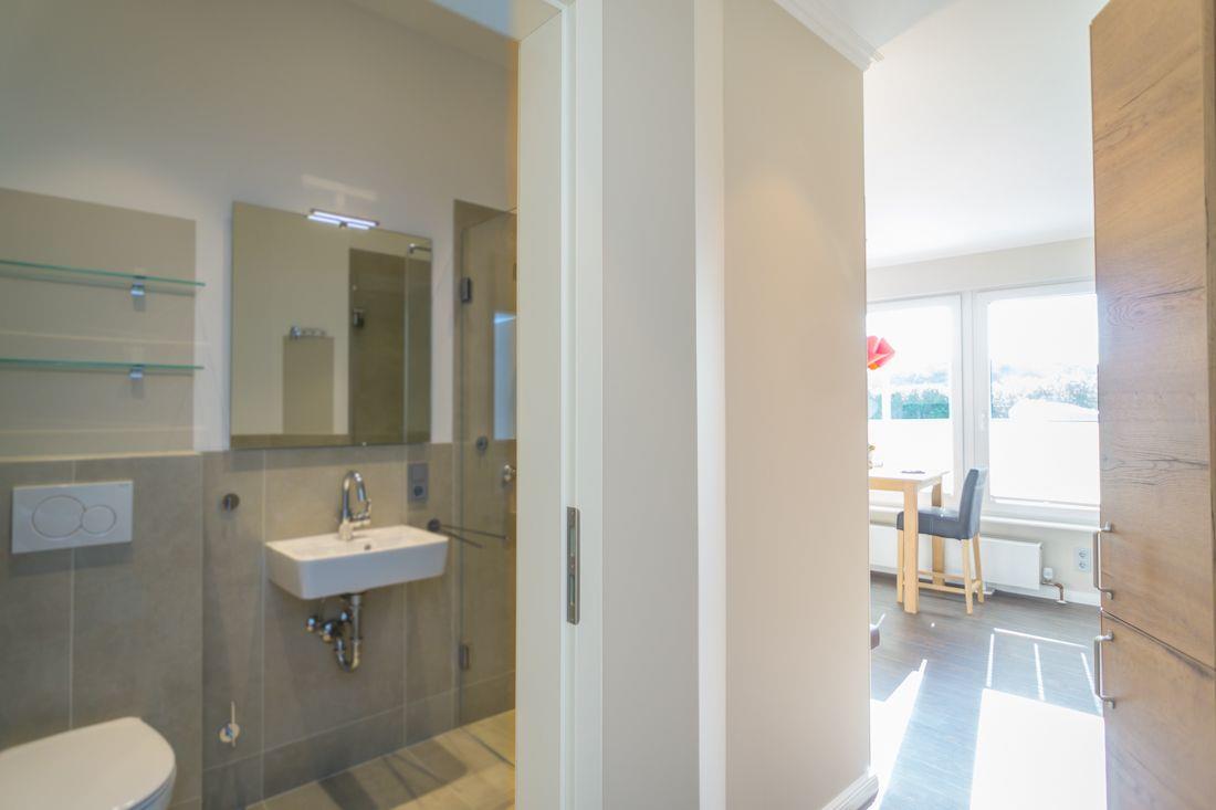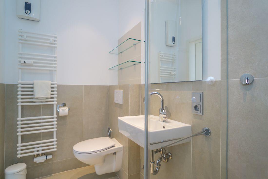 Modernes und großzügiges Duschbad mit WC.