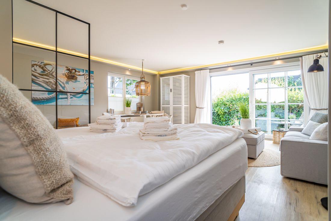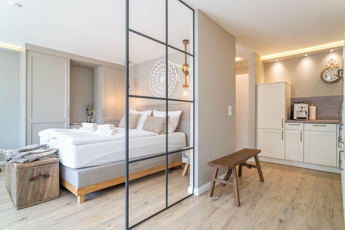 Offene Schlafraum mit Boxspringbett (160x 200)