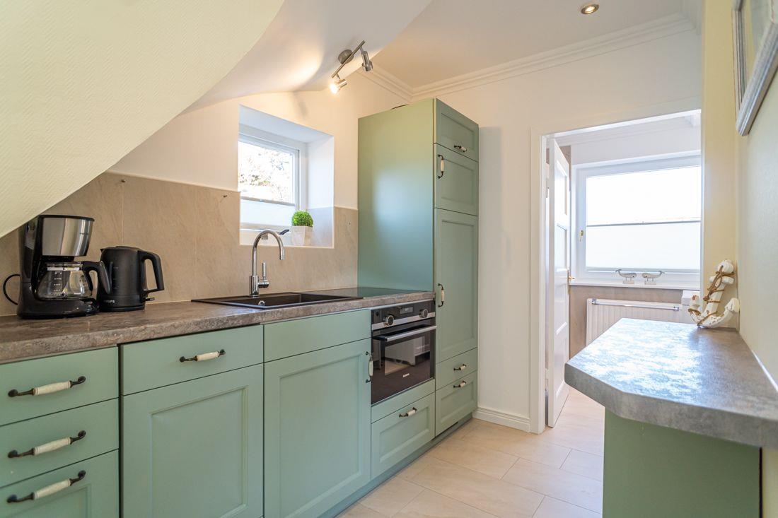 separate Küche verfügt u.a. Kühlschrank, Geschirrspüler und Backofen und Cerankochfeld