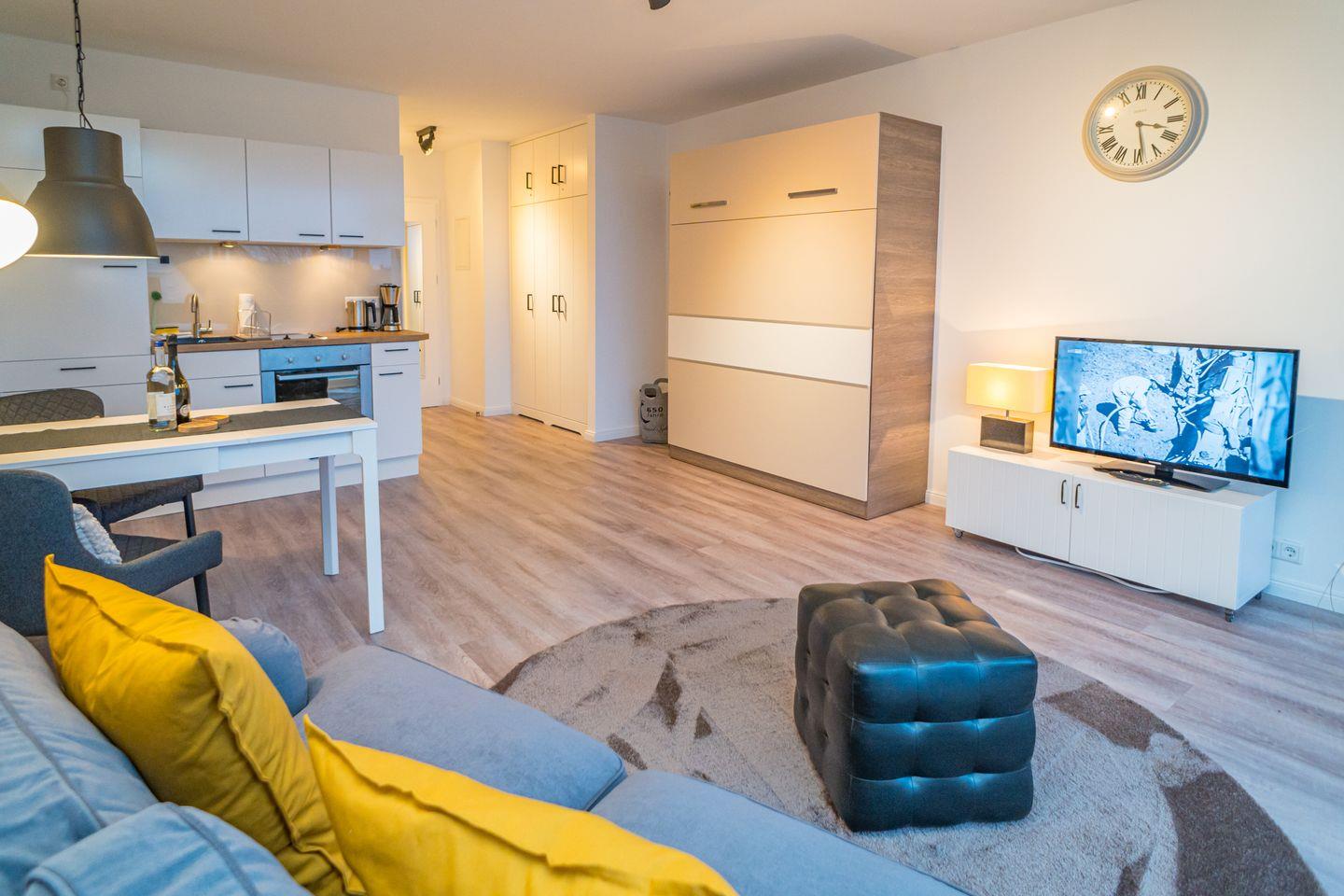 1-Zimmer-Ferienwohnung mit Balkon und Parkplatz. - nur 450m bis zum Strand!