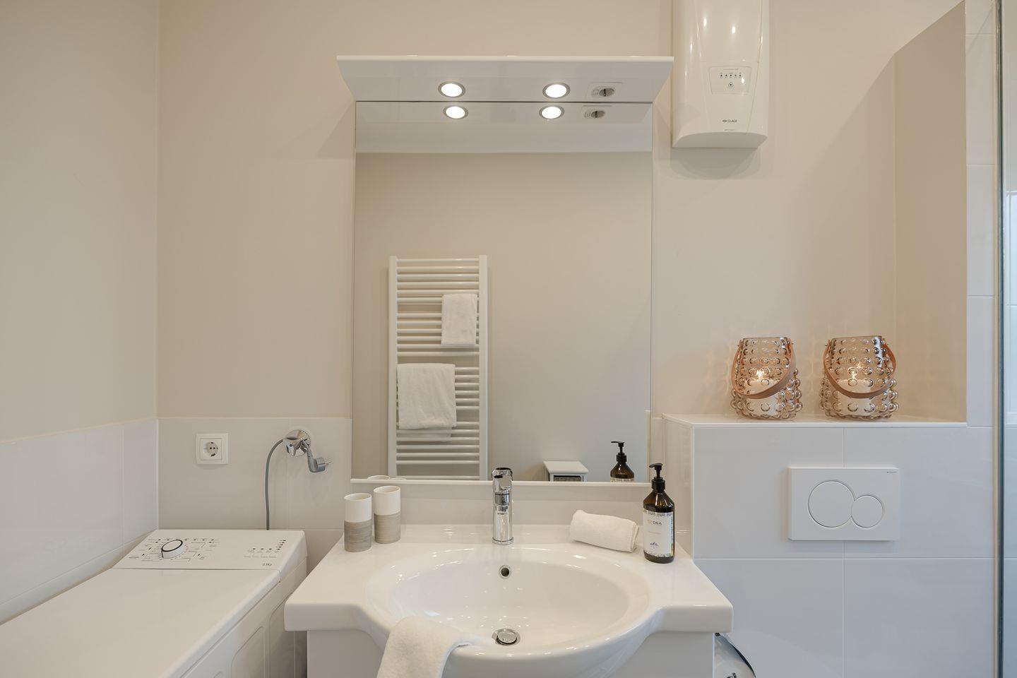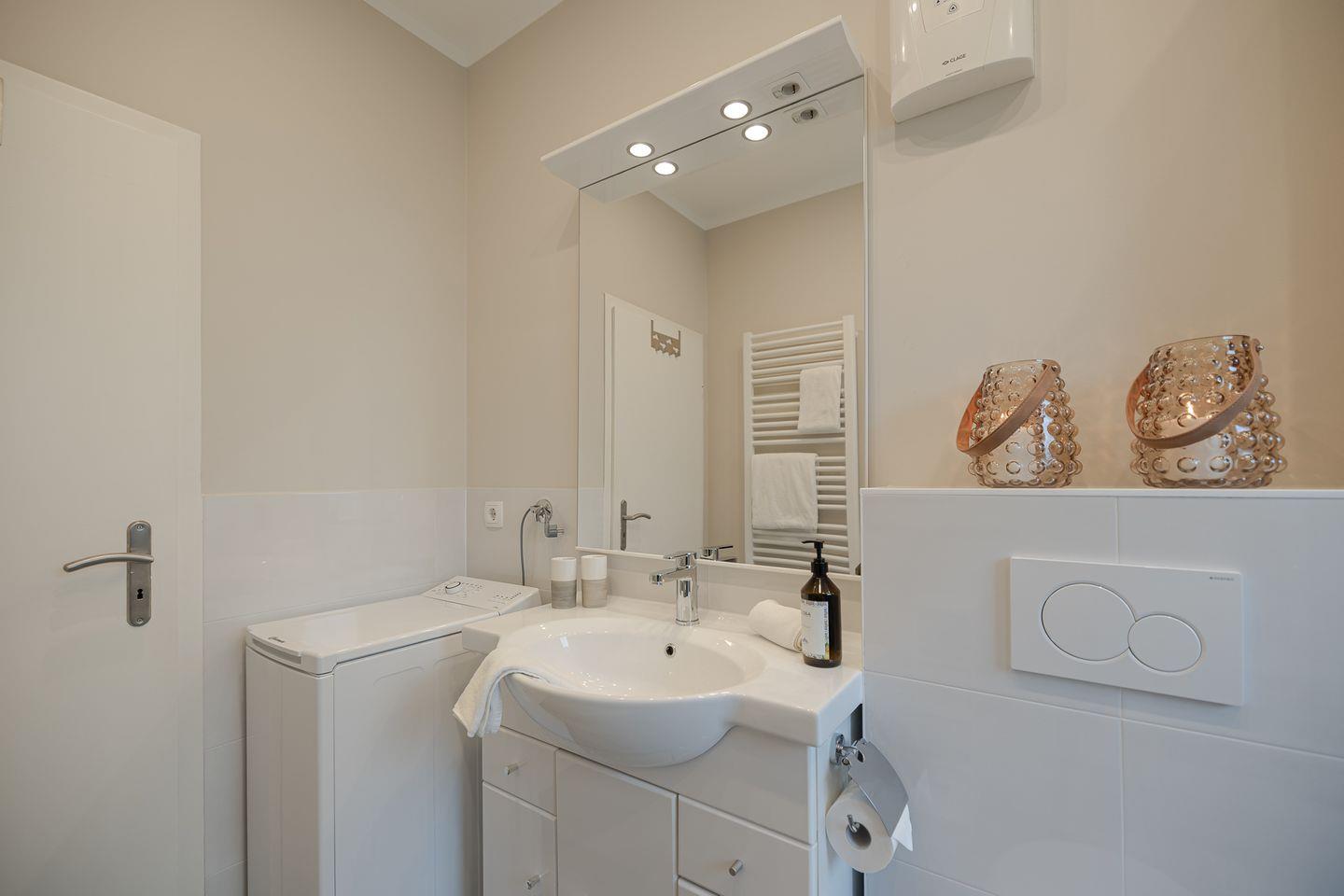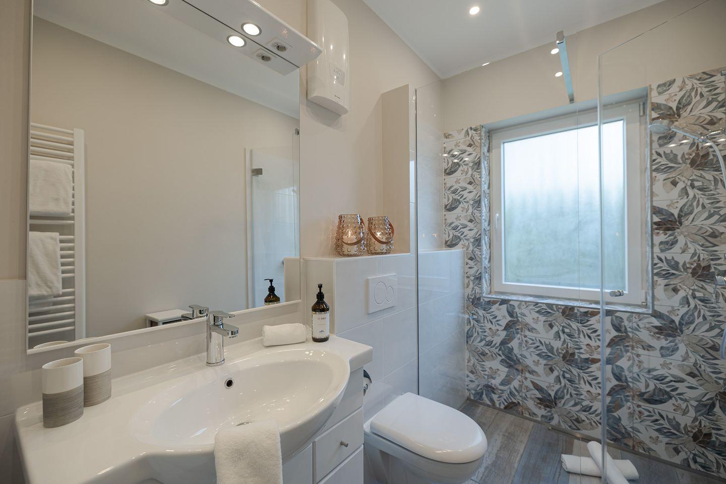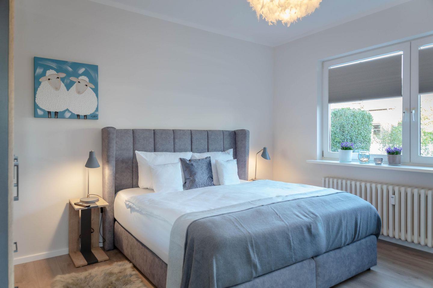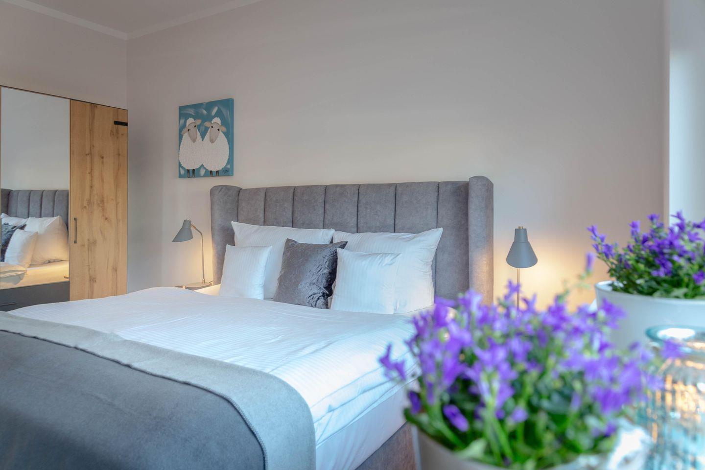 Zwei komfortable Schlafzimmer mit gemütlichen Boxspringbetten sorgen für einen erholsamen Schlaf nach einem erlebnisreichen Tag. Das moderne Badezimmer verfügt über eine großzügige Dusche sowie eine Waschmaschine für zusätzlichen Komfort.