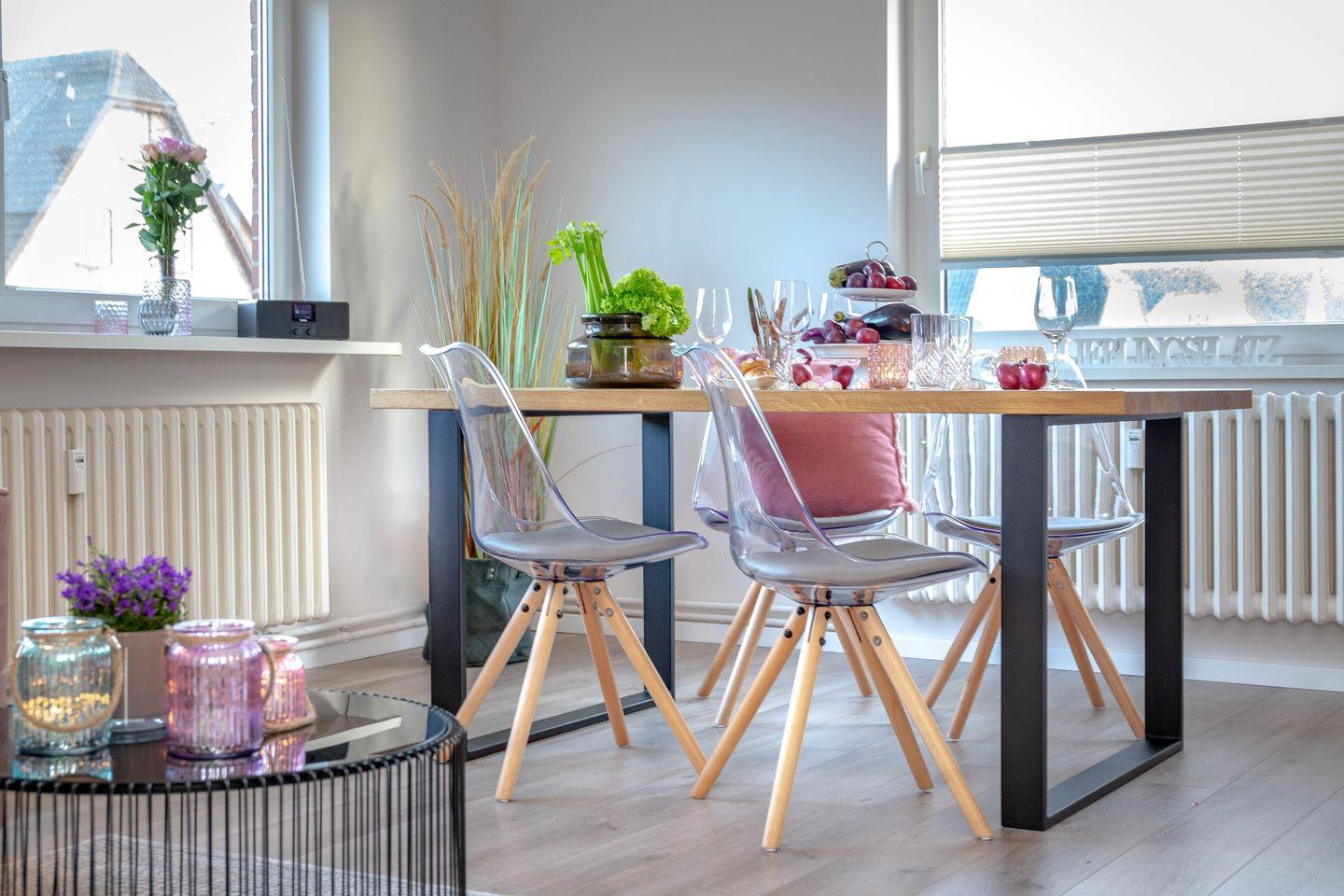 Die Wohnung begeistert mit ihrem stilvollen, lichtdurchfluteten Wohnbereich, der mit gemütlichen Möbeln zum Entspannen einlädt. Die separate, hochwertige Küche bietet Ihnen alles, was Sie für eine entspannte Selbstversorgung während Ihres Urlaubs benötigen.
