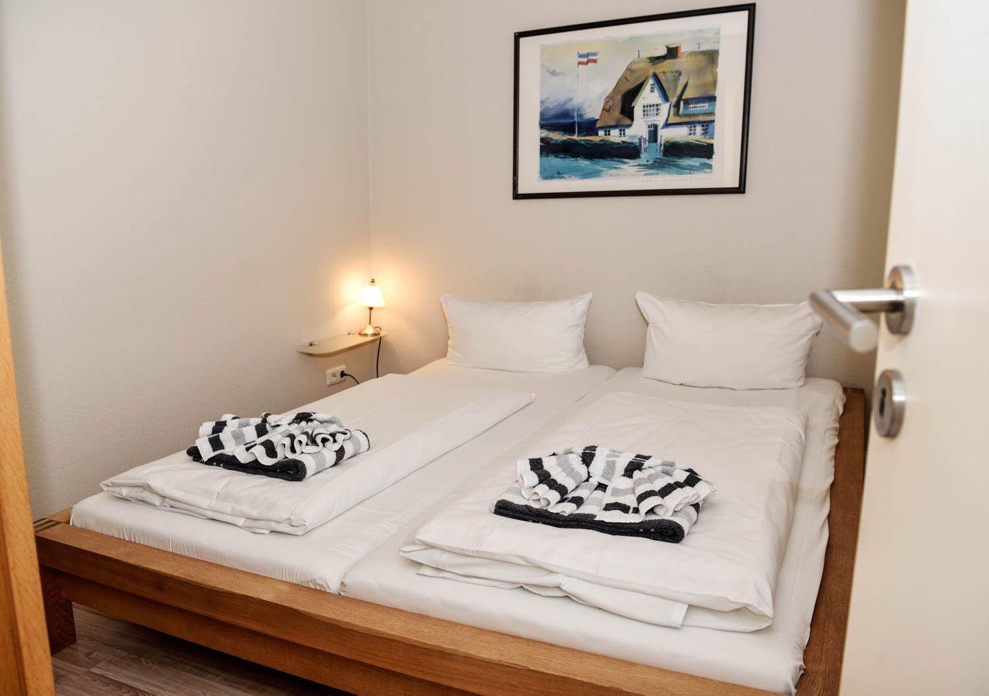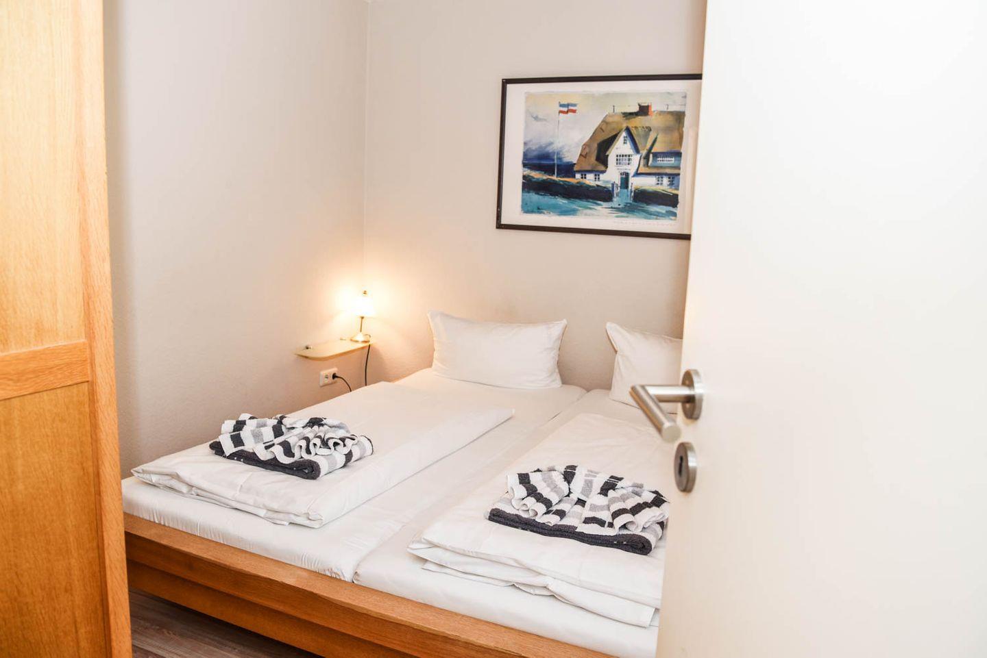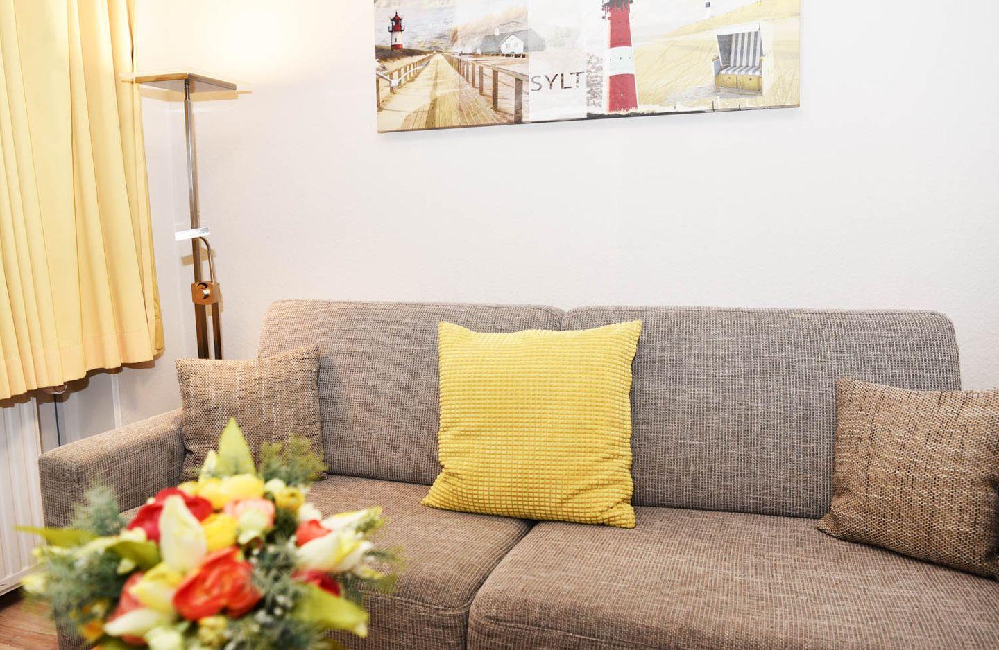 Moin und ein herzliches Willkommen in der Ferienwohnung „Mare Nostrum 4“. Sie liegt im Erdgeschoss eines überschaubaren Appartementhauses in unmittelbarer Strandnähe, zweite Reihe hinter den Dünen von Westerland. Perfekt für zwei Personen mit 46 Quadratmetern Größe und einem separaten Schlafzimmer, aber auch zu viert komfortabel zu nutzen, da sich die gemütliche Couch im Wohnzimmer mit offener Küche als wirklich vollwertiges Doppelbett zum Richtig-gut-Schlafen ausklappen lässt.