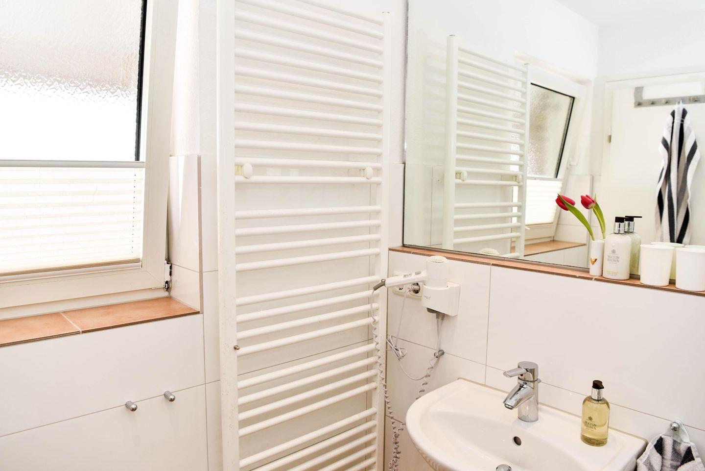 Moin und ein herzliches Willkommen in der Ferienwohnung „Mare Nostrum 11“. Sie liegt in der zweiten Etage eines überschaubaren Appartementhauses in unmittelbarer Strandnähe, hinter den Dünen von Westerland. Mit 50 Quadratmetern Größe und einem separaten Schlafzimmer perfekt für das Urlaubsglück von zwei Personen, aber auch mit vier Personen entspannt zu nutzen, da sich die gemütliche Couch im Wohnzimmer als vollwertiges Doppelbett zum Richtig-gut-Schlafen ausklappen lässt. Die offene Wohnküche (Farbton „Vanille“) ist voll ausgestattet, der Balkon im Sommer möbliert, ein eigener Parkplatz (Tiefgarage) und Waschmaschine/Trockner zur Gemeinschaftsnutzung stehen ebenfalls zur Verfügung. Das Tüpfelchen auf dem i an diesem Haus ist seine echt gute Lage: Keine zehn Minuten sind es von hier aus dieser ruhigen Straße bis zur quirligen Innenstadt mit allen Einkaufsmöglichkeiten, urigen Kneipen und attraktiven Restaurants. Und wer gerne vor dem Frühstück im Meer schwimmt, kann theoretisch in der Badehose „eben rüber laufen“ zum Strand, der ist hier nämlich keine zwei Minuten weit weg.