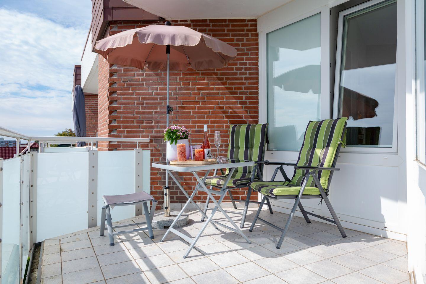 Vom Wohnbereich aus gelangen Sie auf den großzügigen Balkon, welcher nach Süd-Osten ausgerichtet ist. Hier können Sie die Sonne genießen und sich angenehm entspannen, während Sie den Blick über die Stadt schweifen lassen. Die separate Küche bietet Ihnen alles, was Sie für die mühelose Selbstversorgung im Urlaub benötigen und was Ihnen das Kochen zusätzlich erleichtert. Das helle Badezimmer verfügt über eine geräumige Dusche.
