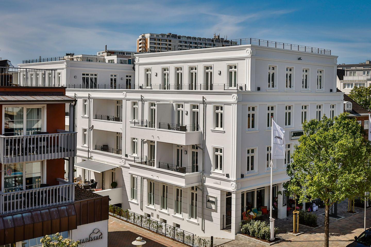 Diese moderne und stilvoll ausgestattete 3-Zimmer-Ferienwohnung im ersten Obergeschoss des Logierhauses Jonna bietet auf ca. 90 m² ausreichend Platz für bis zu 4 Personen. Verbringen Sie entspannte Urlaubstage auf Sylt in zentraler Lage von Westerland. Die Einkaufsmeile ist nur wenige Schritte entfernt und die Strandpromenade erreichen Sie fußläufig in ein paar Minuten. Genießen Sie die ruhige Atmosphäre dieser exklusiven Ferienwohnung, die mit Fußbodenheizung, zwei Balkonen und einem gemeinschaftlichen Wellnessbereich jeden Komfort für einen unvergesslichen Aufenthalt bereithält.