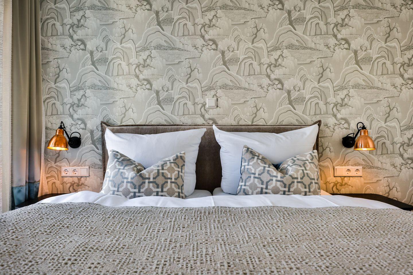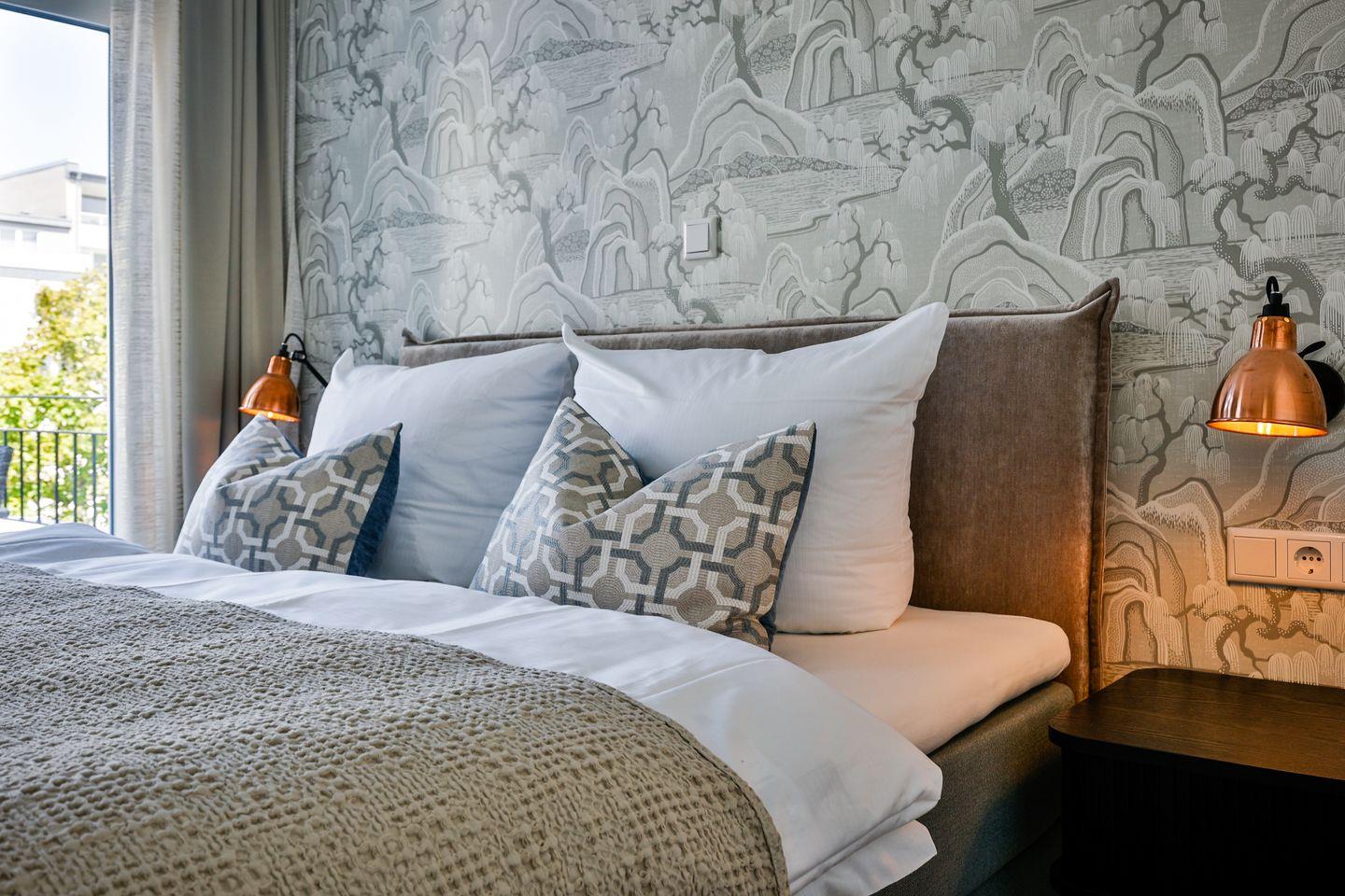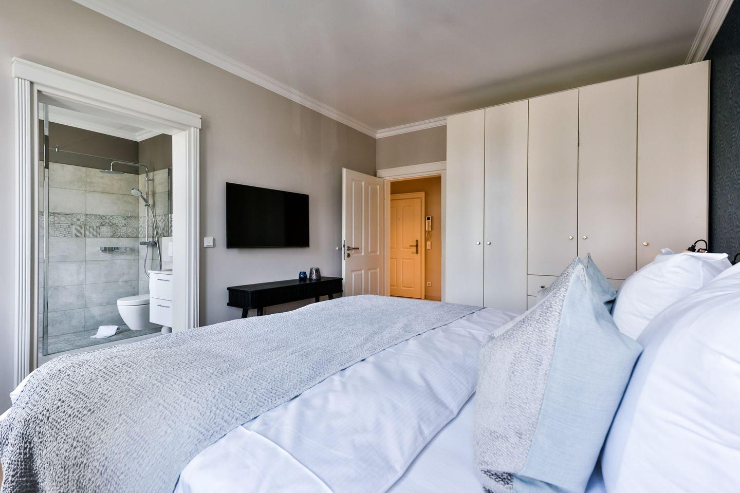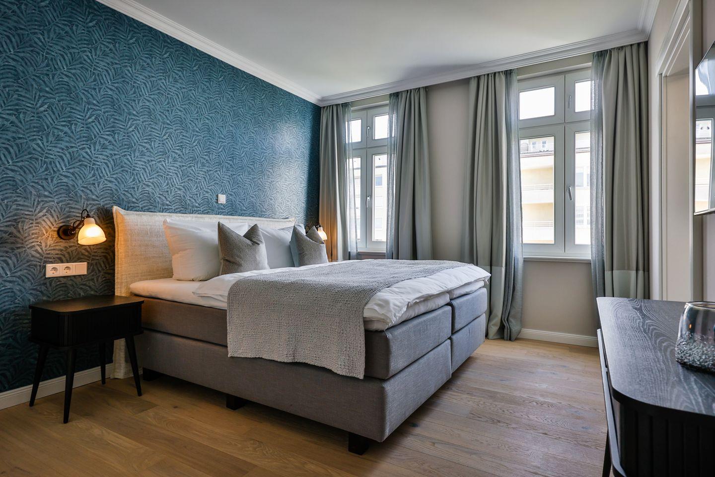Beide Schlafzimmer sind sehr geschmackvoll eingerichtet und bieten höchsten Schlafkomfort. Das Hauptschlafzimmer ist mit einem Boxspringbett (180x200 cm) und TV ausgestattet. Das zweite Schlafzimmer ist ebenfalls mit einem Boxspringbett (160x200 cm) und TV eingerichtet. Beide Zimmer haben ein ruhiges Ambiente für erholsame Nächste. Die Wohnung bietet zwei moderne Badezimmer, die mit ebenerdigen Duschen, WC und Fön ausgestattet sind; ein Badezimmer hat zusätzlich eine Badewanne zum Entspannen und Wohlfühlen. Abgerundet wird der Bereich durch ein separates Gäste-WC.