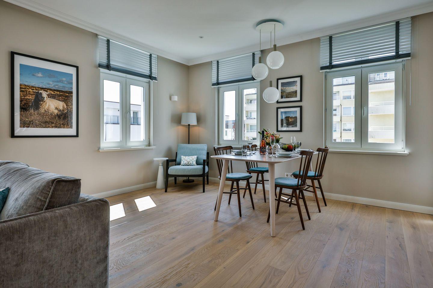 3-Zimmer-Ferienwohnung auf 1 Ebene (2.OG) in Westerland mit ca. 90 qm für bis zu 4 Personen.